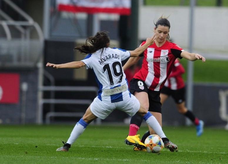 L’enfrontament ha començat amb clara superioritat de les locals, que han pressionat a la zona blanc-i-blava generant perill i diferents ocasions de gol, tot i que sense definir. El primer ensurt ha arribat en el minut 20 de partit, després d’un xut d’Azkona, que s’ha trobat amb el travesser impedint que les roig-i-blanques es posessin per davant.