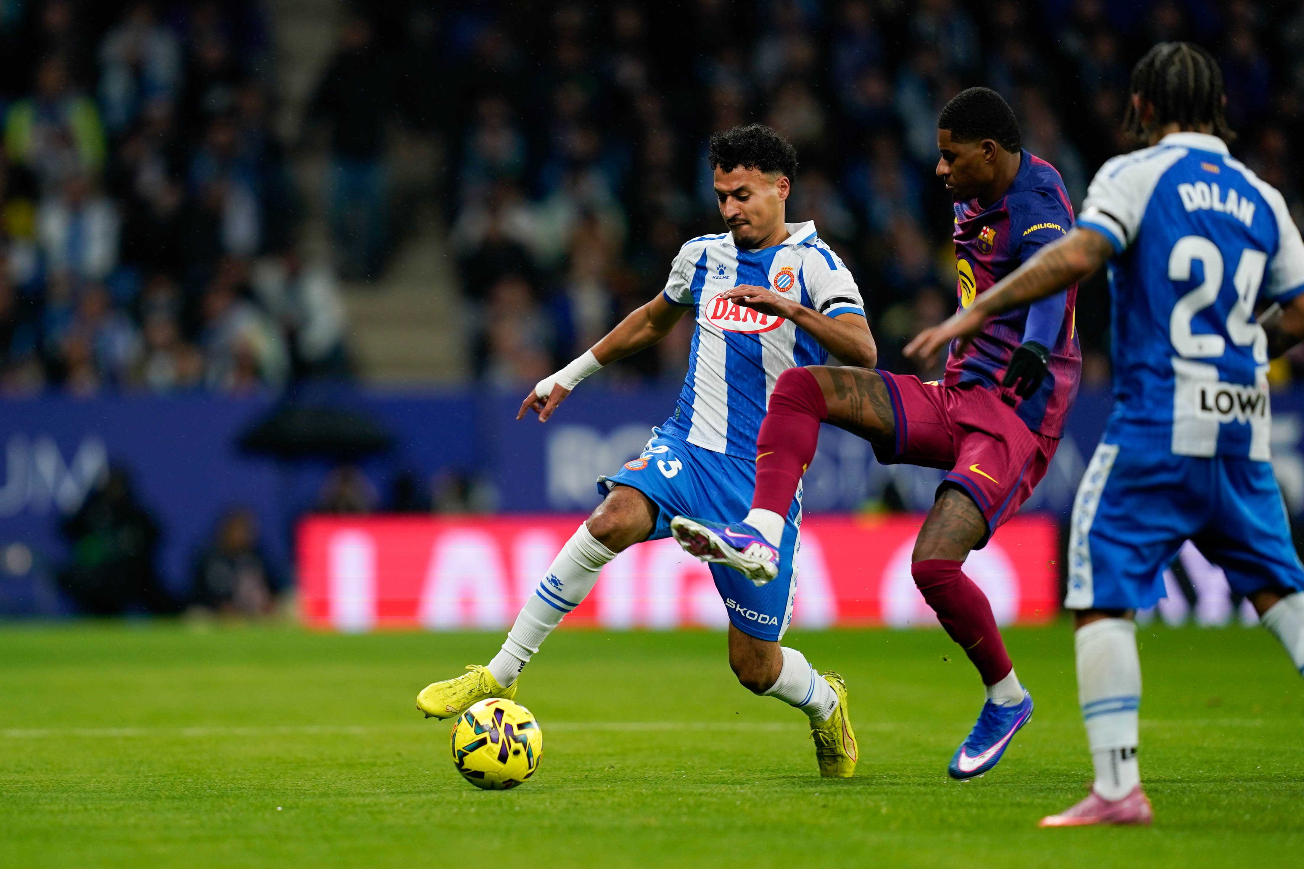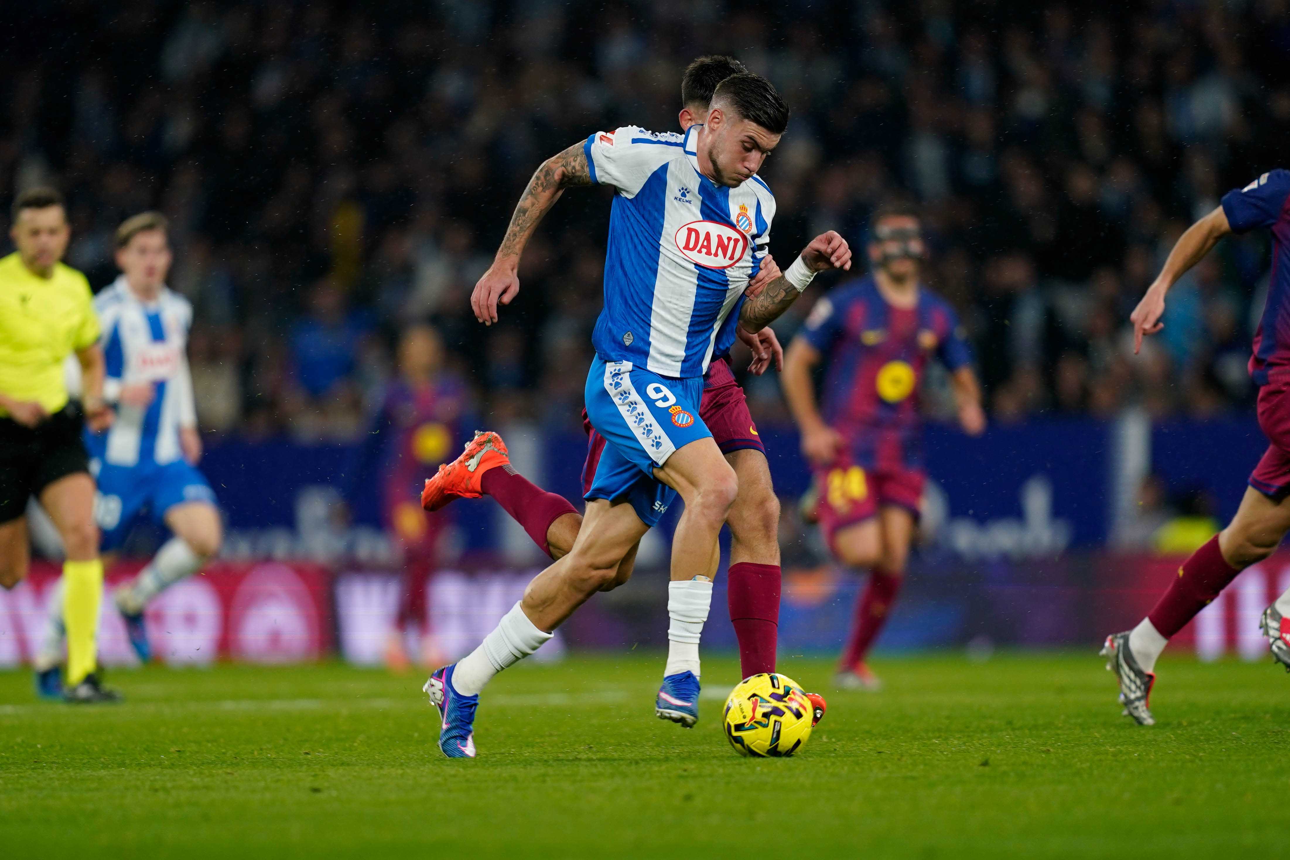 Quan el partit agonitzava, Olmo la va col·locar a l’escaire i va glaçar l’ànim blanc-i-blau. Va ser un cop dur. I encara va arribar un altre més, quan l’equip, totalment ferit anímicament, no va poder evitar una contra que va culminar Lewandowski. El 0-2 final va ser massa càstig, només alleujat per l’ànim de la grada, que va acomiadar un equip esgotat al crit d’«orgullosos de ser pericos».