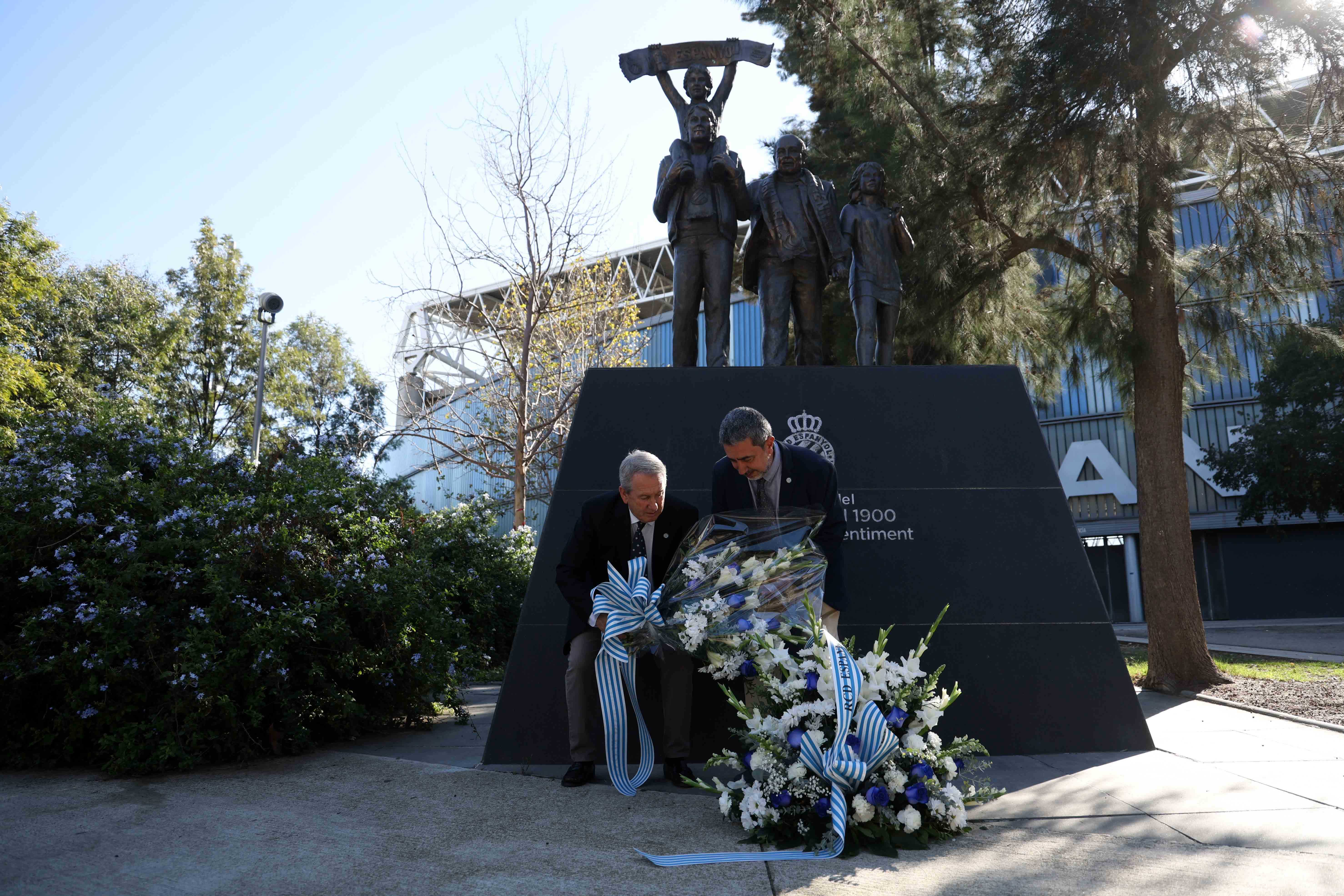 Una mica més tard, una representació de l’entitat, amb el president blanc-i-blau, Alan Pace, al capdavant, acompanyat per Mao Ye, els jugadors Antoniu Roca i Roberto Fernández, i les germanes Domènech, el representant de Relacions Institucionals Esportives, Joan Capdevila, la directora del futbol femení, Dolors Ribalta, el president de la FCPE, Ton Roig, ambaixadors, exjugadors, patrons de la Fundació i representants de l’Ajuntament de Cornellà, Enrique Vanacloy, han participat en la tradicional ofrena floral al monument de l’afició.
