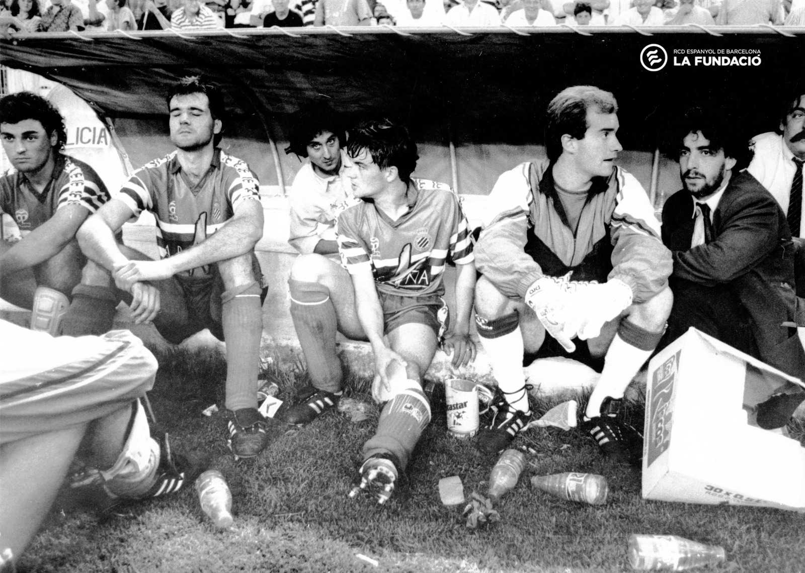 L'Espanyol va arribar al tram final de la temporada 1989/90 amb molts dubtes. Juanjo Díaz va aconseguir una bona ratxa de resultats que va arribar a acostar l'equip a dos punts de l'ascens directe, però no va poder evitar la promoció final. Aquest cop el rival va ser el CD Màlaga. I per a l'Espanyol arribava unes dates preocupants. N’Kono, el titularíssim porter blanc-i-blau, seria baixa per estar seleccionat amb el Camerun per preparar el Mundial d’Itàlia.