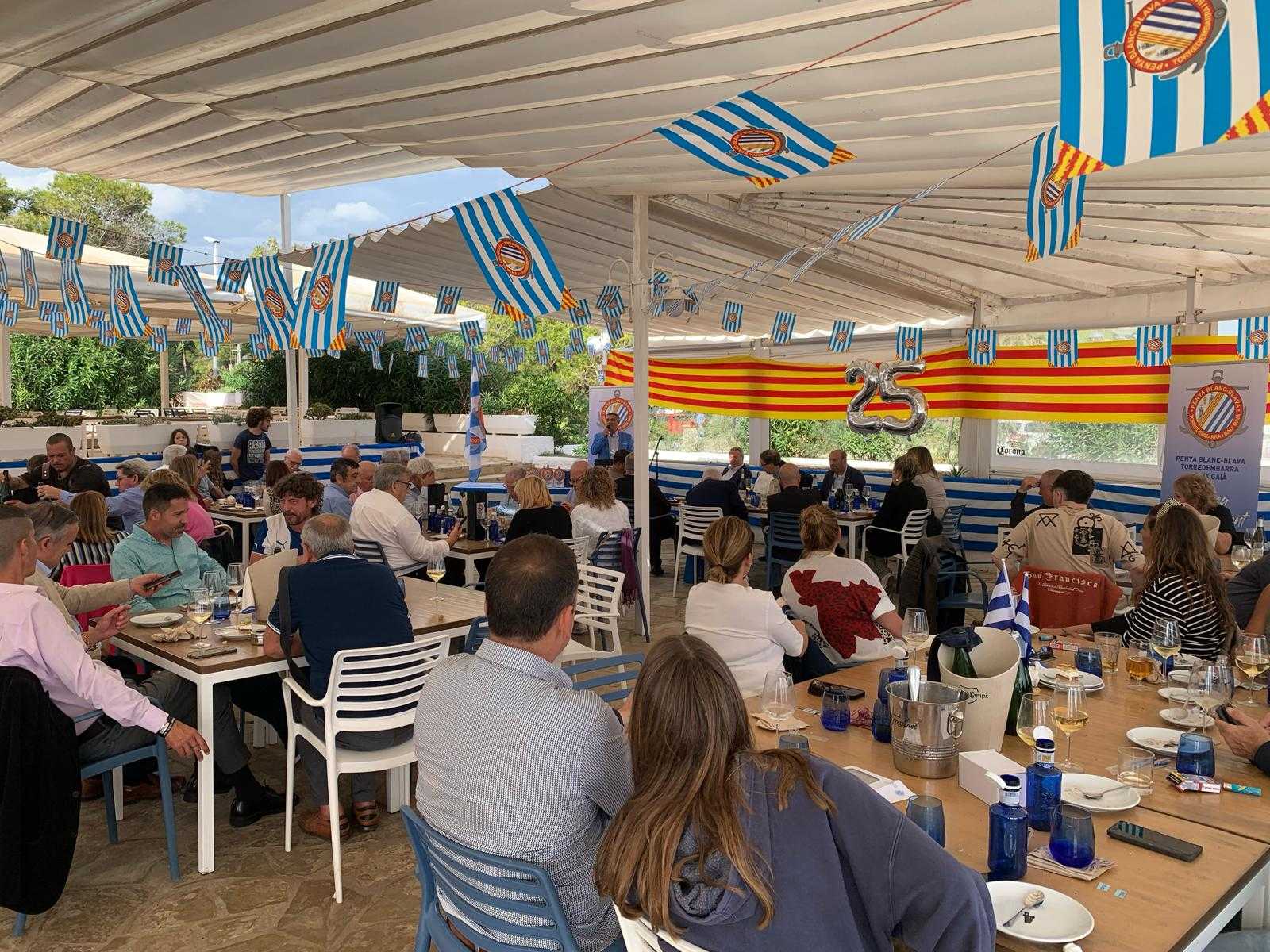 La Penya Blanc-i-Blava Torredembarra i Baix Gaià va celebrar aquest passat dissabte el seu 25è aniversari en un acte que va comptar amb uns 70 assistents i amb 9 penyes veïnes.