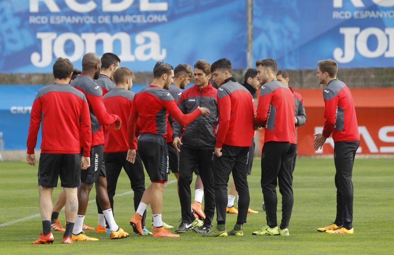 El primer entrenament de la setmana ha comptat amb una àmplia representació de jugadors de l'Espanyol B que han estat cridats pel cos tècnic blanc-i-blau per completar la sessió preparatòria.