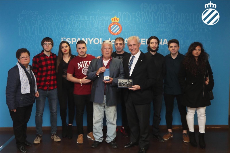 En senyal d'ànims i amb la voluntat que pugui seguir gaudint dels partits a l'RCDE Stadium, el vicepresident Carlos García Pont, i la presidenta de la Federació Catalana de Penyes de l'Espanyol (FCPE), Araceli Pérez, li han fet entrega d'un obsequi.