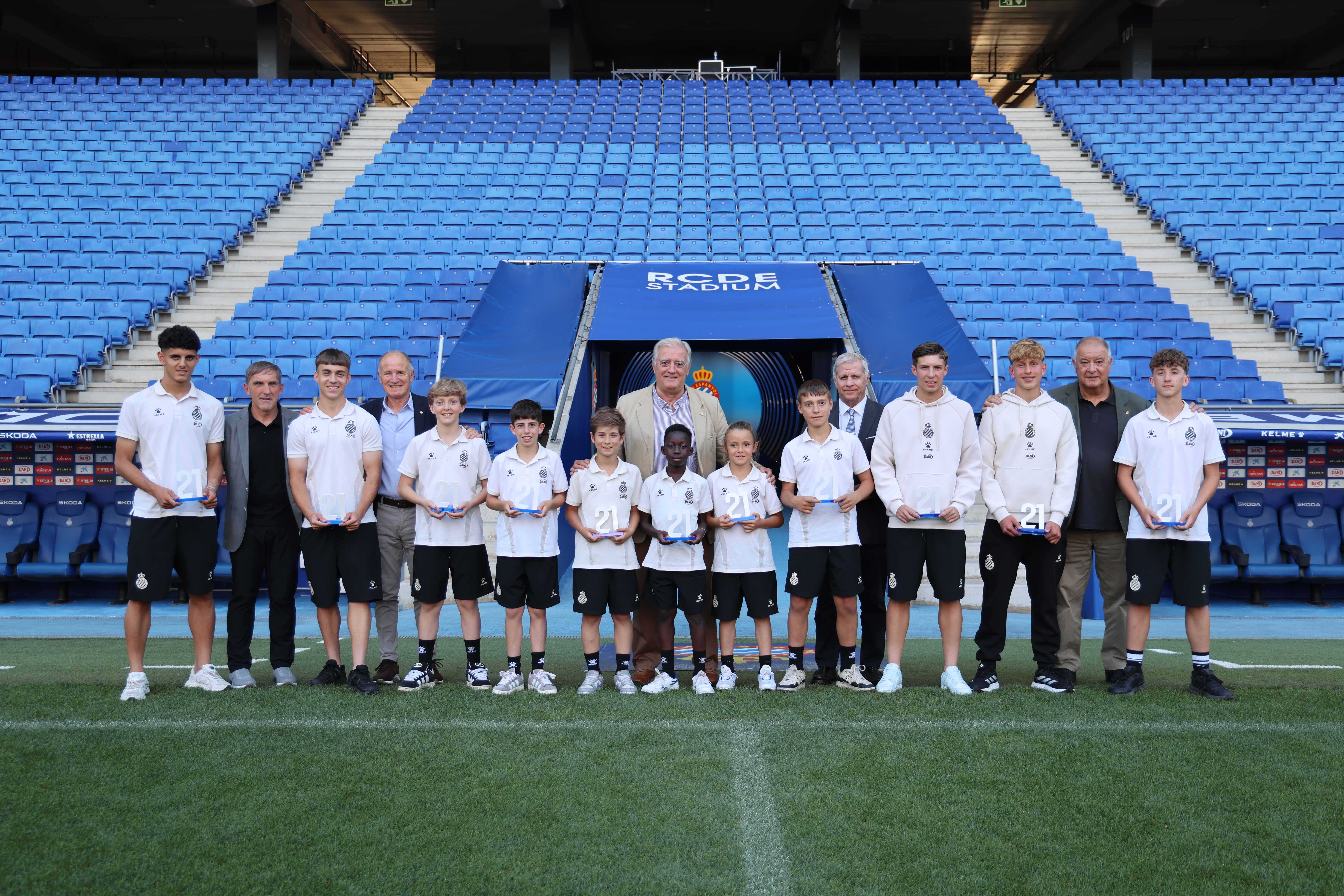 Aquest projecte, avaluat setmanalment pels entrenadors al llarg de tota la temporada, té com a objectiu sembrar una identitat reconeixible que reflecteixi els colors i la filosofia del club. Fruit d’aquesta metodologia, onze jugadors —un per equip de La21 masculina— han estat reconeguts per representar de manera exemplar els valors del RCDE. L’acte de lliurament, celebrat a l’RCDE Stadium amb la presència de familiars, ha estat un moment de reconeixement, però també d’orgull col·lectiu.