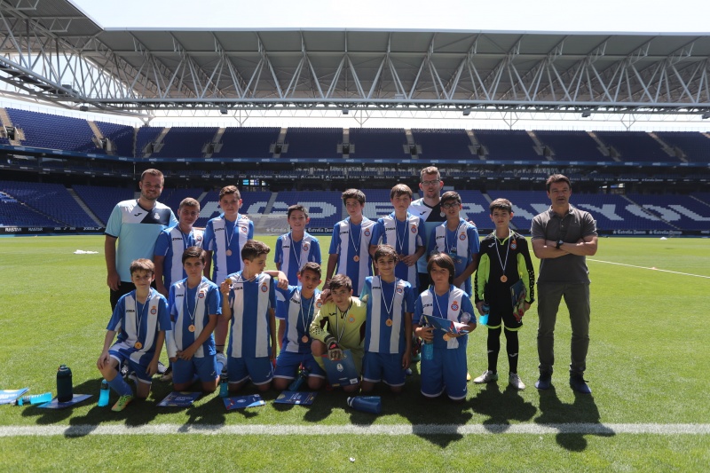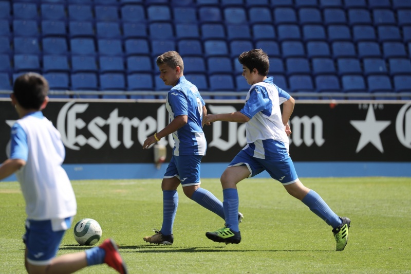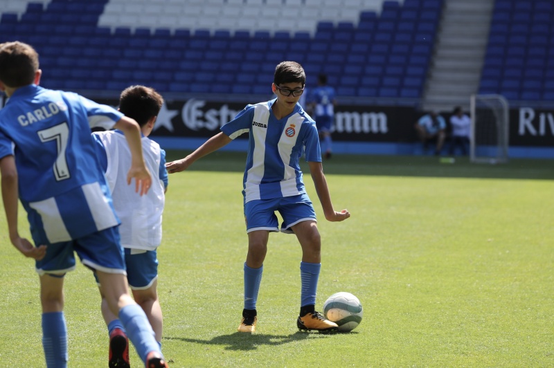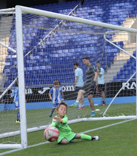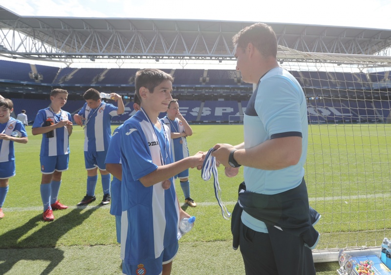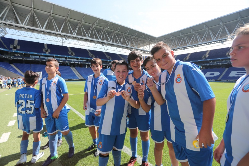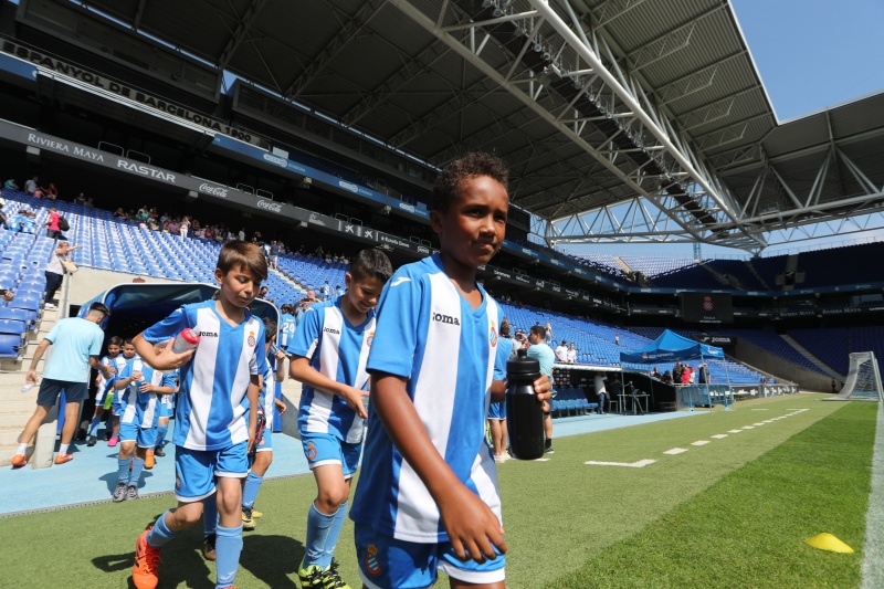 Els nens han jugat al mateix escenari que els seus ídols i han fet les delícies de pares, familiars, amics i aficionats que s'han acostat al temple blanc-i-blau durant la matinal. Com a colofó, cada un dels alumnes de l'Escola RCDE ha rebut una medalla commemorativa i amb regals de Panini.