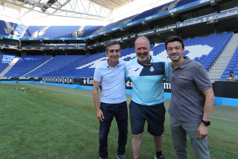 El coordinador del futbol base del RCD Espanyol, Álex García, el director de la Ciutat Esportiva Dani Jarque, Eloy Pérez, i el jugador del primer equip blanc-i-blau, Álvaro Vázquez, han acompanyat els nens durant el matí.