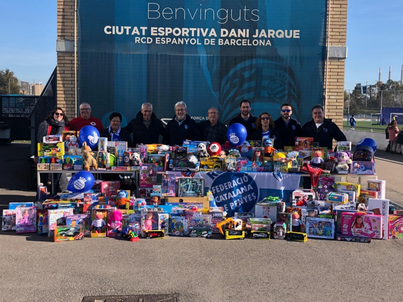 Aquest dissabte, a la CE Dani Jarque, la Federació Catalana de Penyes de l’Espanyol i l’Agrupació de Veterans del club han organitzat una nova edició d’ ‘Una entrada, una joguina’.