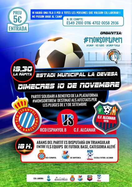 El RCD Espanyol participarà al torneig benèfic d’Alcanar per recaptar fons arran del desastre natural que es va produir per les aiguades del passat mes de setembre a la zona del Montsià.