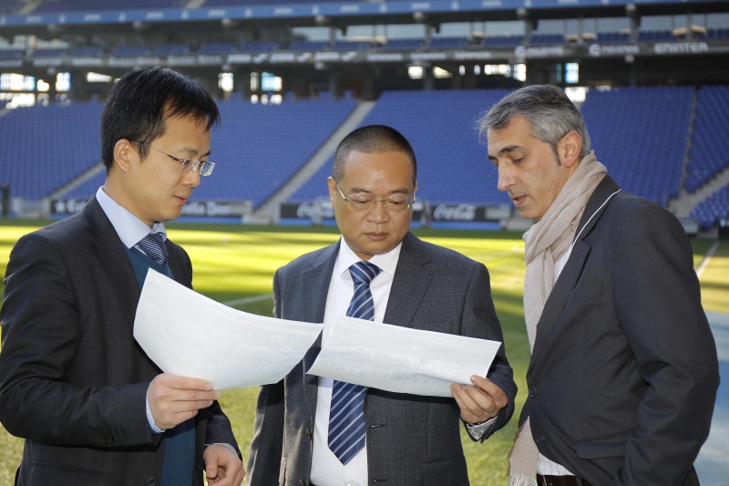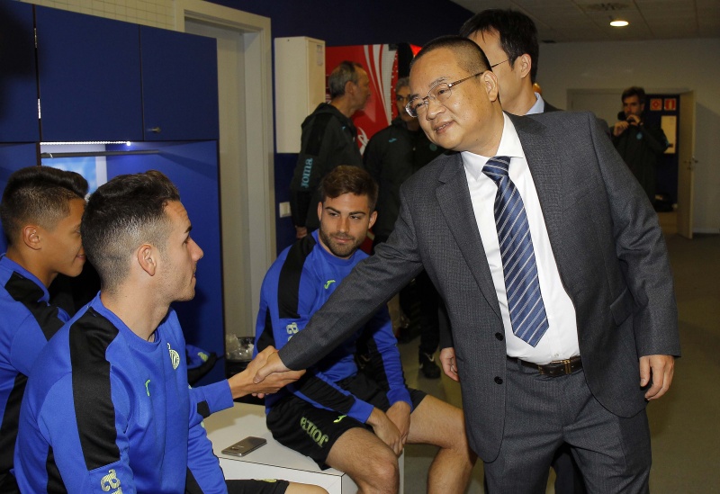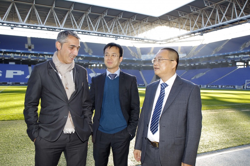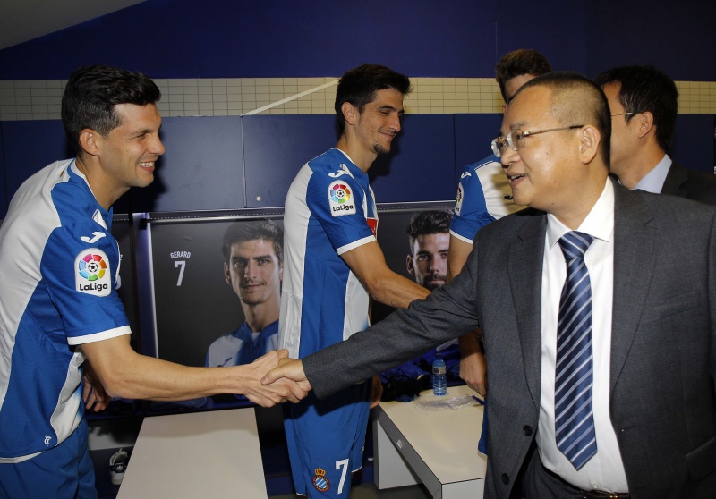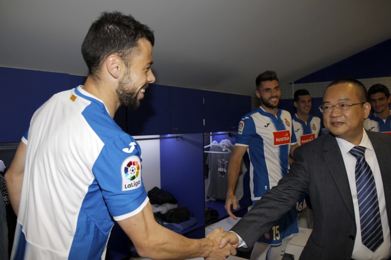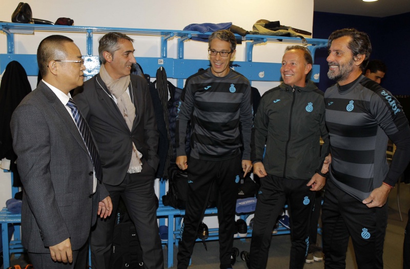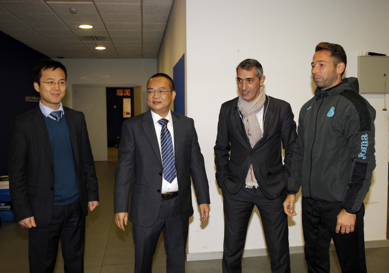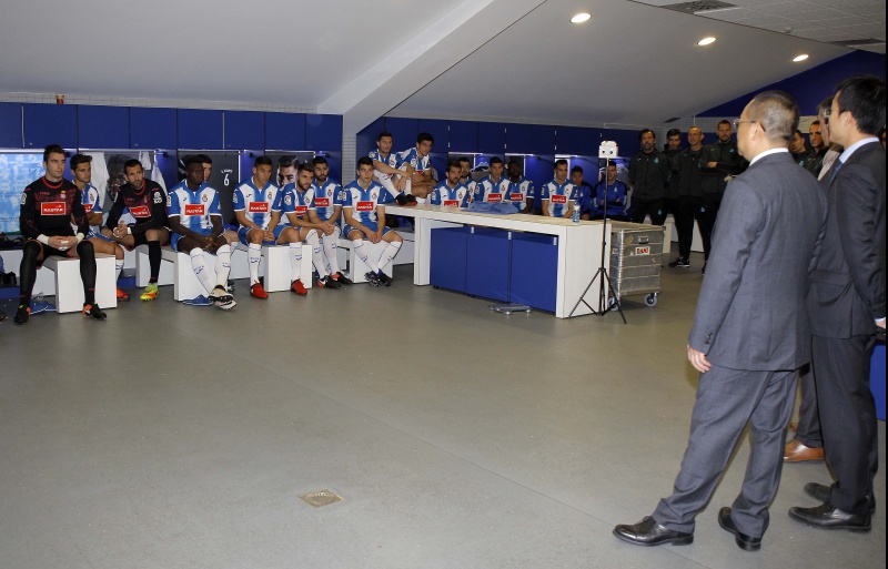 Pocs minuts després d'aterrar al Prat el president del RCD Espanyol Chen Yansheng s'ha presentat al RCDE Stadium per complir amb una de les tradicions de la temporada: la foto oficial amb els jugadors i el cos tècnic.