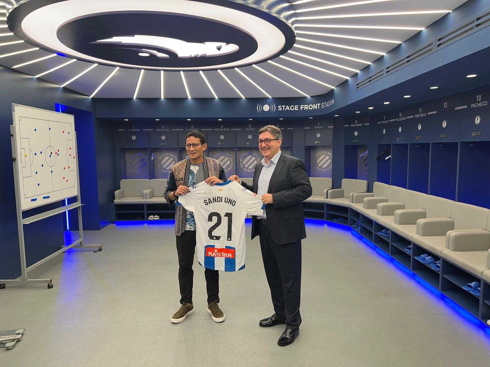 Sandiaga Salahudin Uno ha mostrat un gran interès per conèixer el RCD Espanyol i les activitats que el club realitza amb i per a tots els indonesis. Durant la seva visita, es va recordar el primer i últim partit que el primer equip de l'Espanyol ha disputat a Indonèsia, el primer l'any 1979 i l'últim el 2017, precisament contra l'equip favorit del ministre, el Persija Jakarta.
