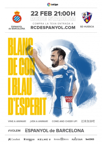 El RCD Espanyol de Barcelona ha estrenat una nova línia gràfica publicitària a partir d'il·lustracions i fotografies basades en imatges dels actuals membres de la plantilla. Aquesta nova imatge, que ja es va utilitzar en l'últim partit davant el Rayo Vallecano, s'aplicarà en totes les promocions que es realitzin amb motiu dels partits que es disputen al RCDE Stadium. La nova línia publicitària estarà basada en il·lustracions de jugadors a partir d'imatges reals i en frases inspirades en els càntics que s'escolten a la grada de l'estadi, o s'adaptaran episodis de l'actual himne o d'altres himnes oficials que el club ha tingut al llarg dels seus 119 anys d'història. Els càntics, així com les frases dels diferents himnes, han de respectar sempre l'idioma original de la seva creació.