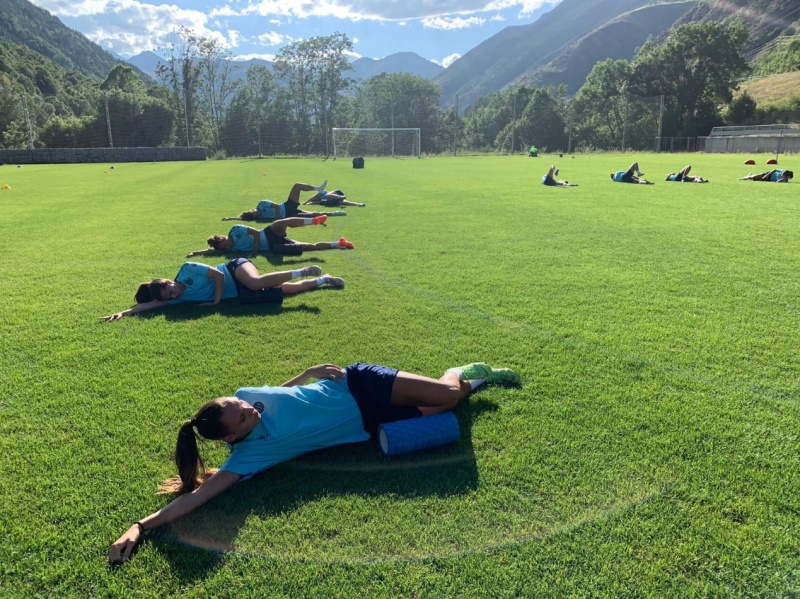 La plantilla blanc-i-blava del primer equip femení ha començat la tarda d'aquest dilluns les sessions de treball al camp de futbol de Naut Aran, a Viella.