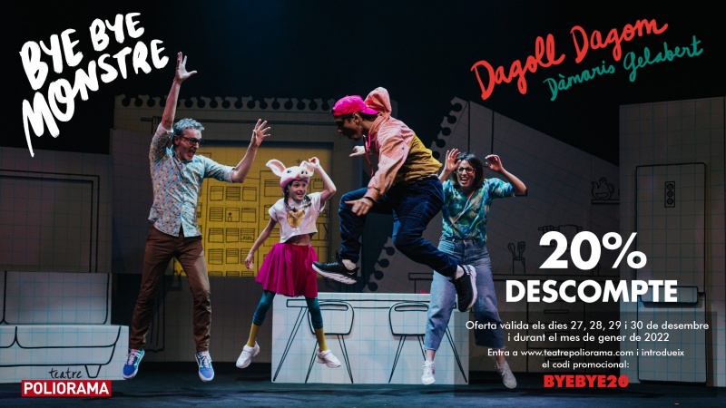 Com a soci del RCD Espanyol gaudeix dels espectacles ‘Bye Bye Monstre’ i ‘T’estimo si he begut’, amb un 20% de descompte pels dos espectacles, vàlid per les funcions del 27 al 30 de desembre i durant tot el mes de gener.
