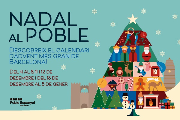 Del 18 al 30 de desembre (excepte el 25 de desembre) i del 2 al 5 de gener, el Poble Espanyol esdevindrà el calendari d'advent més gran de Barcelona!