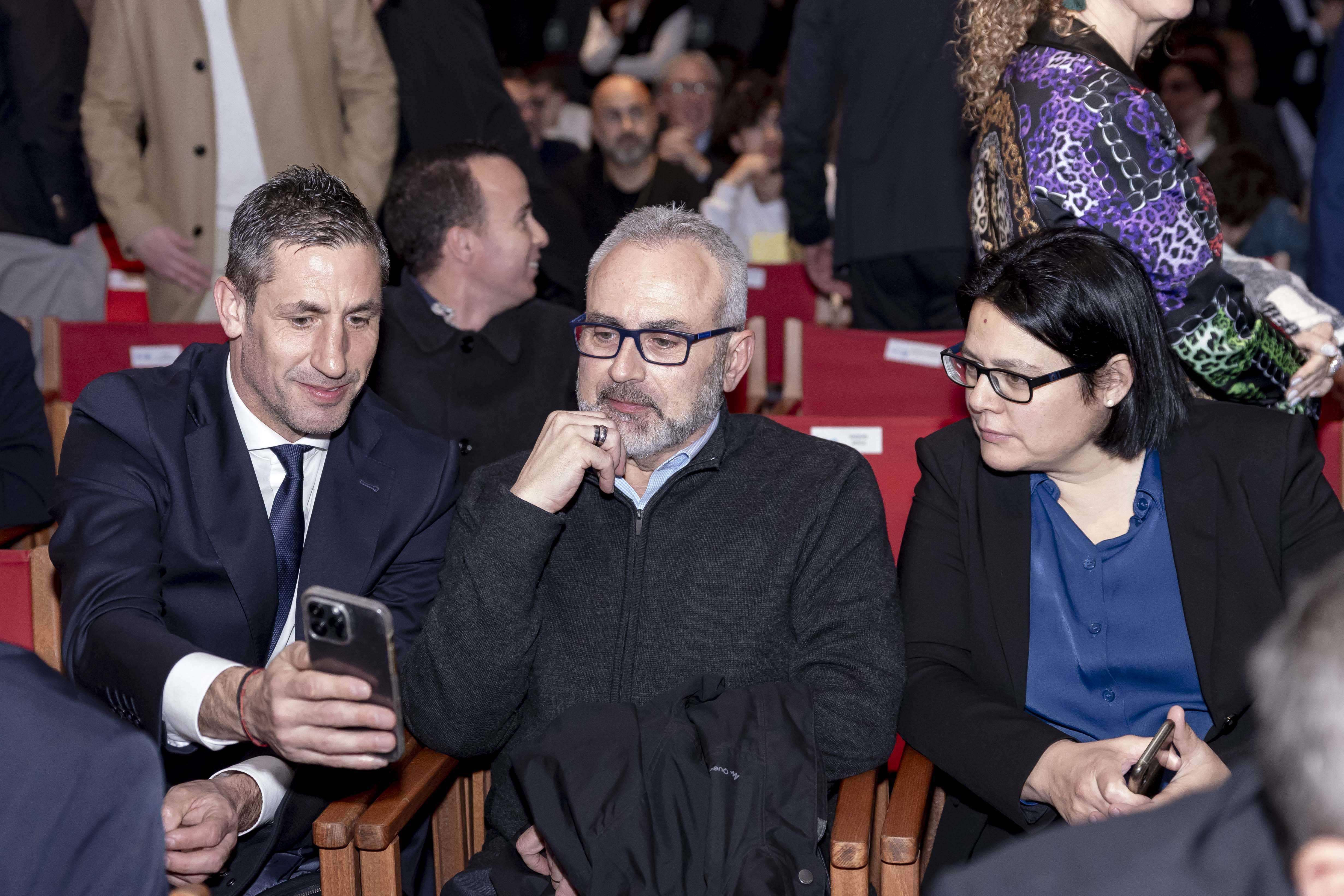 La directiva responsable del futbol femení i ambaixadora del RCD Espanyol, Dolors Ribalta, i el director de l'Àrea Social, Alberto Ariza, van acompanyar Capdevila a l'acte.