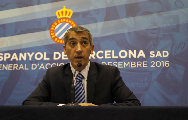 Ramon Robert, conseller delegat del RCD Espanyol, ha comparegut en roda de premsa després de la Junta General d’Accionistes per explicar el full de ruta traçat pel Consell d’Administració pels propers terminis.