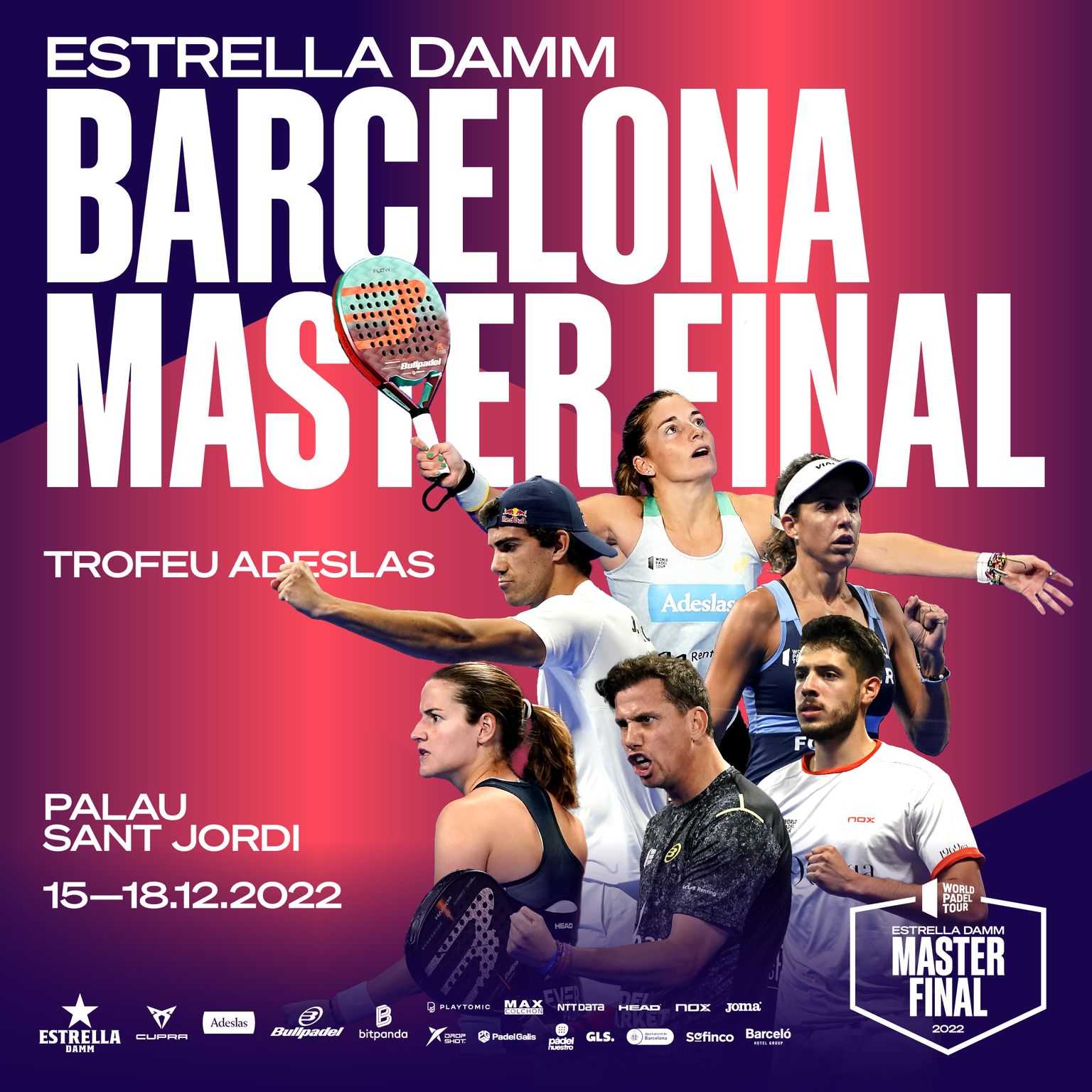 Aquest any gaudeix del pàdel a ESTRELLA BARCELONA MÀSTER FINAL TROFEU ADESLAS del 15 al 18 de desembre al PALAU SANT JORDI amb els descomptes següents i amb el codi: WPTRCDE