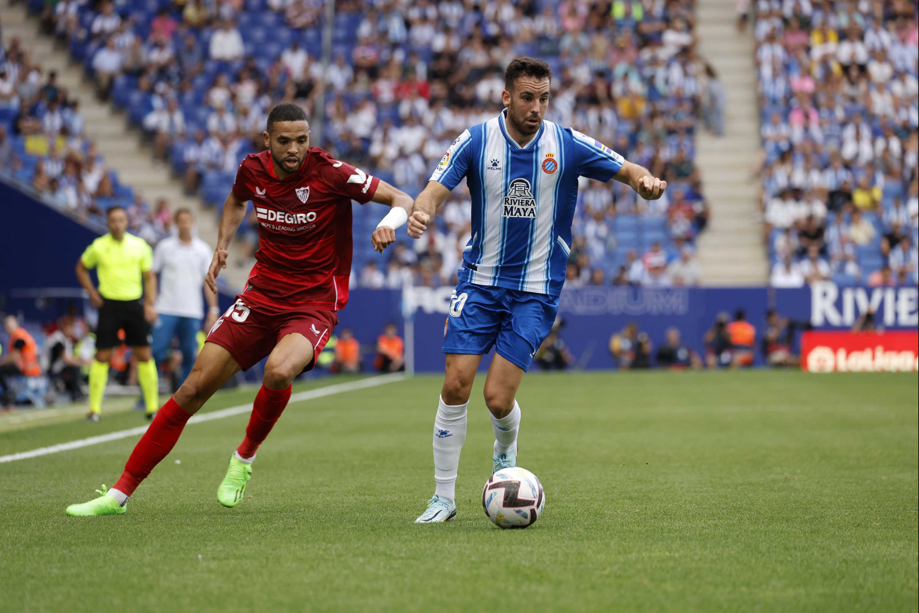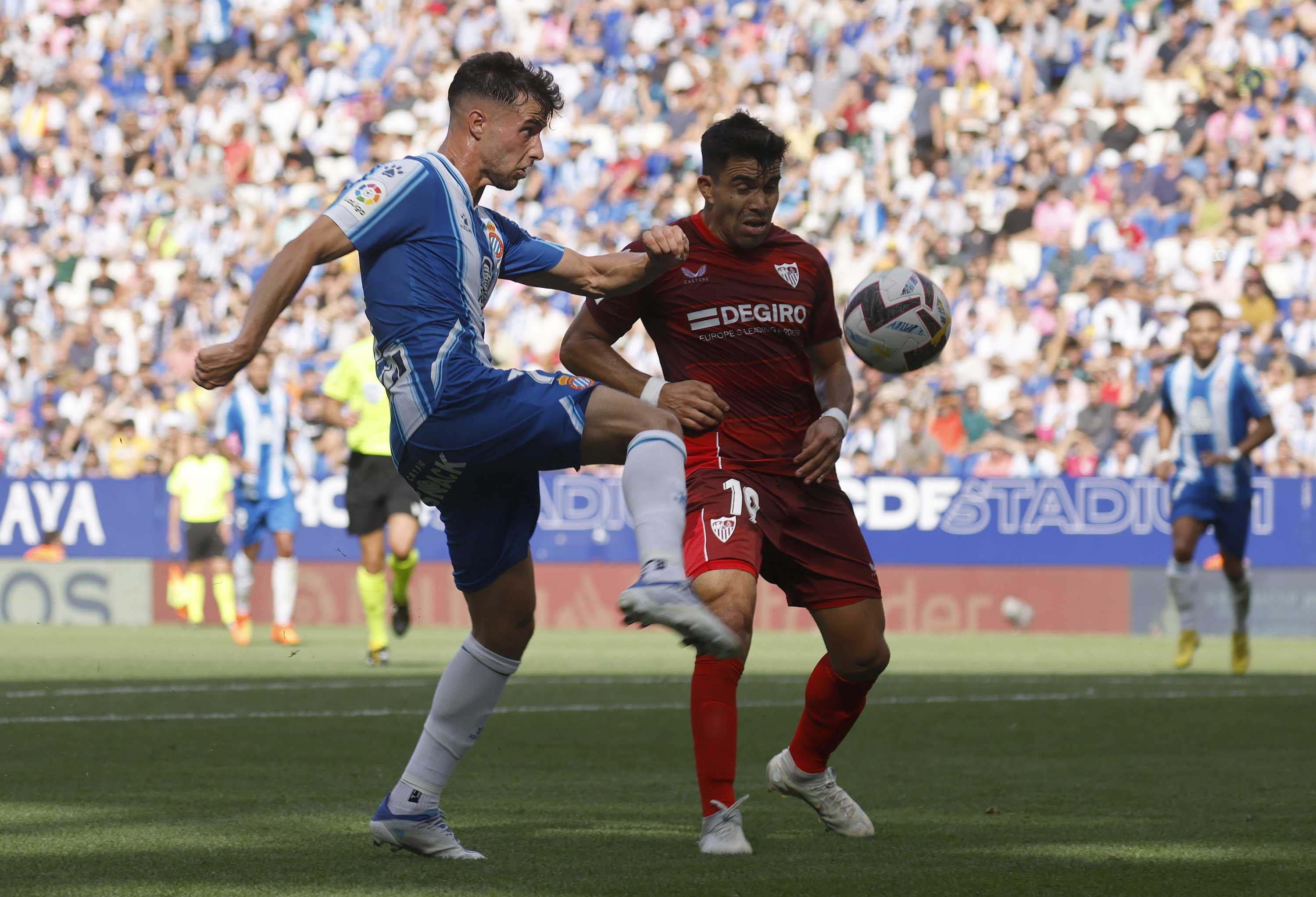 Espanyol reduced the deficit to one thanks to Braithwaite, who collected a scrappy ball in the box to score and revive the pericos’ fortunes. The hosts had new life and, with the euphoric energy of the RCDE Stadium, took control of the momentum of the game.