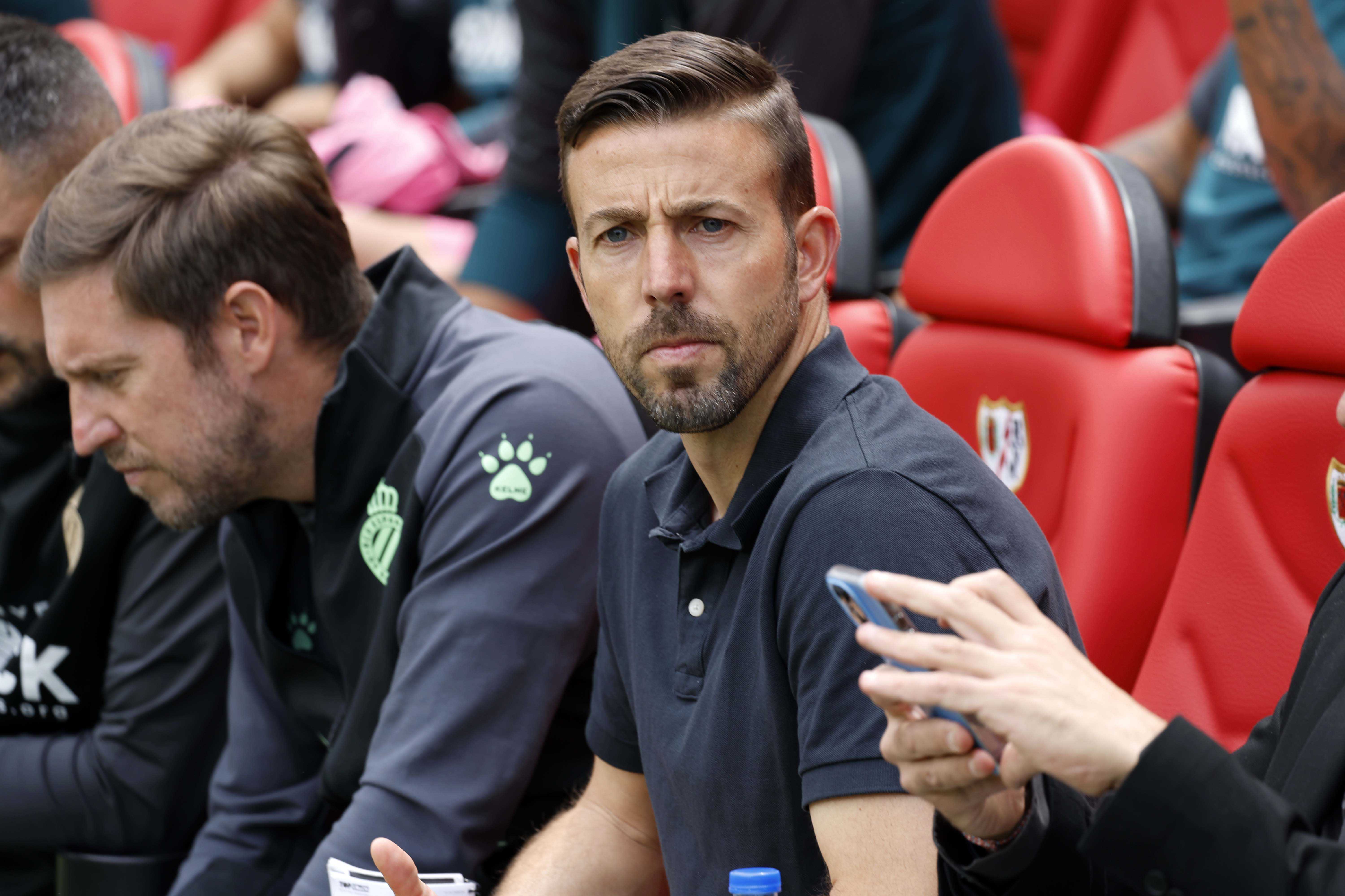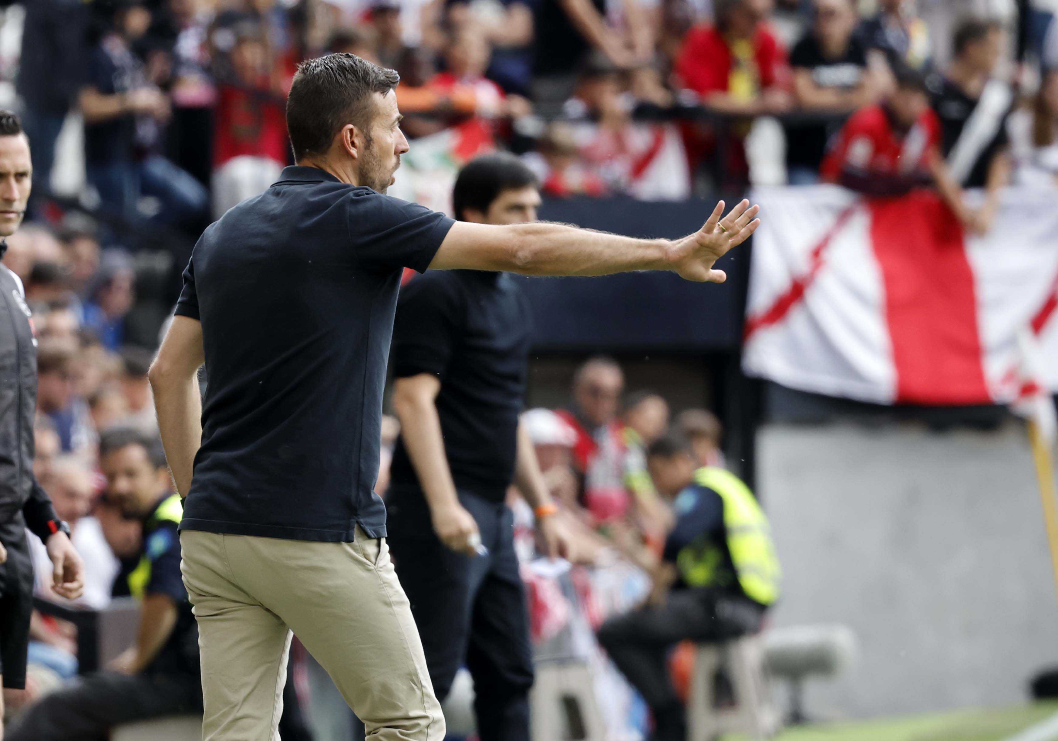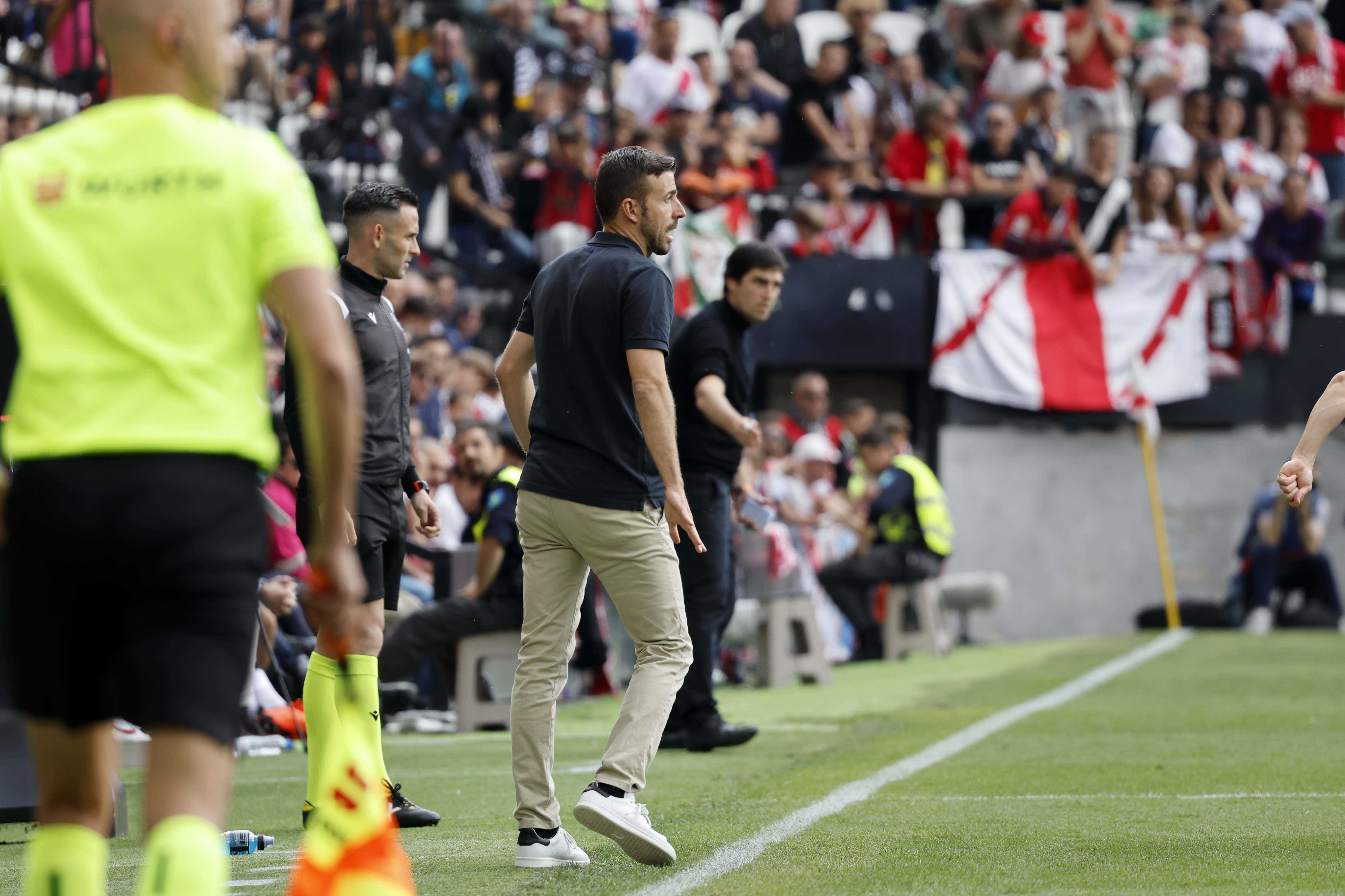 The RCD Espanyol coach reacts to the win over Rayo Vallecano