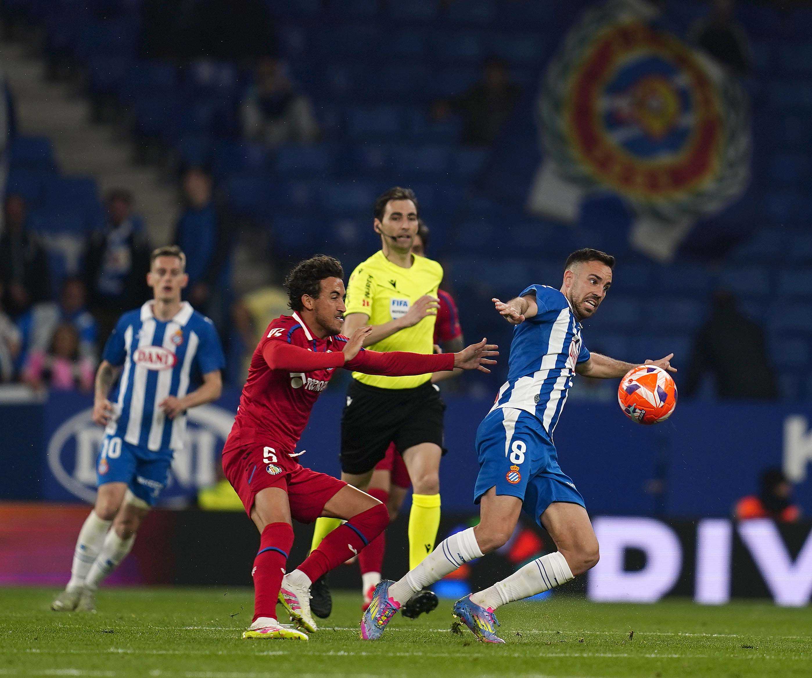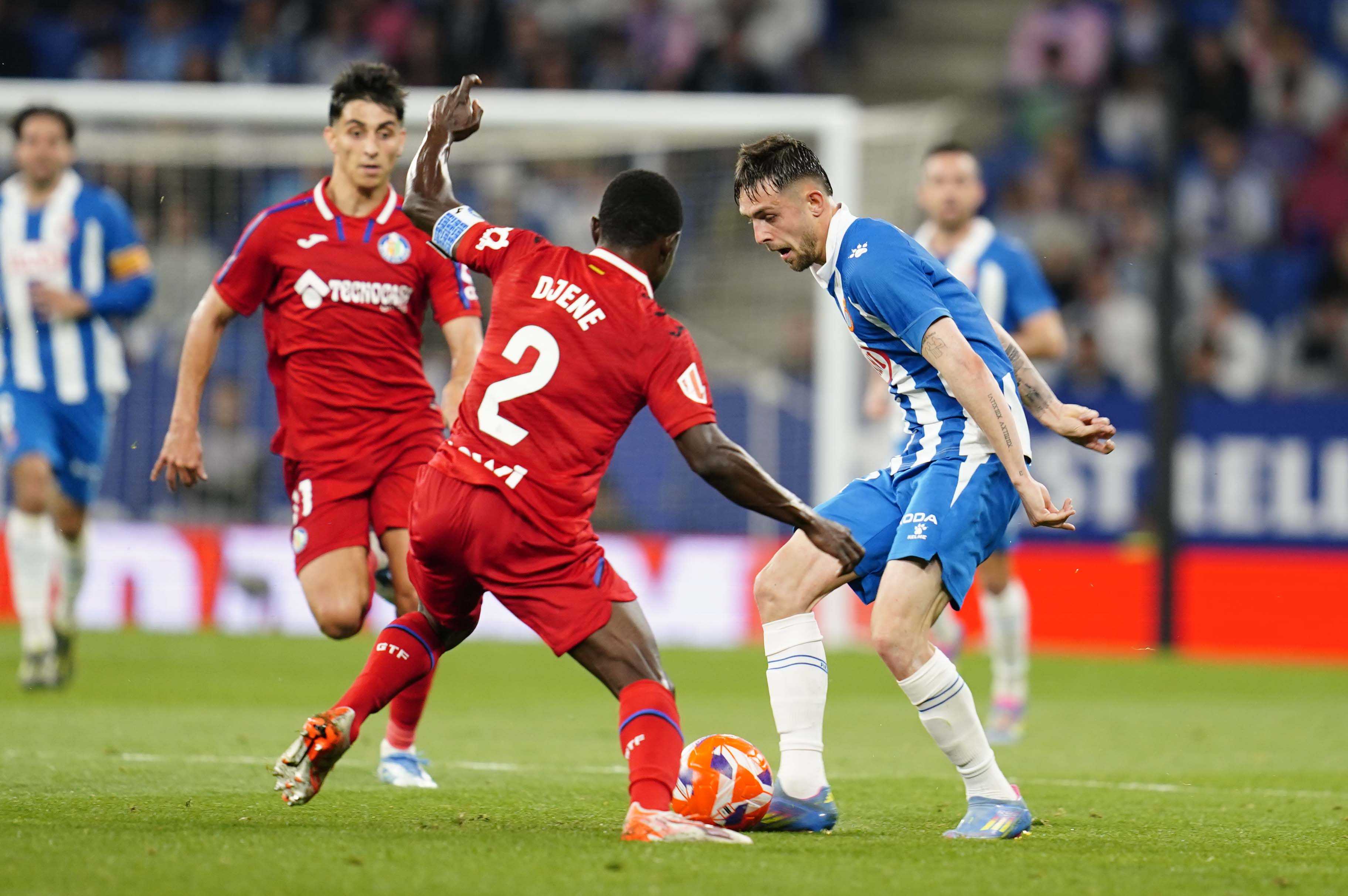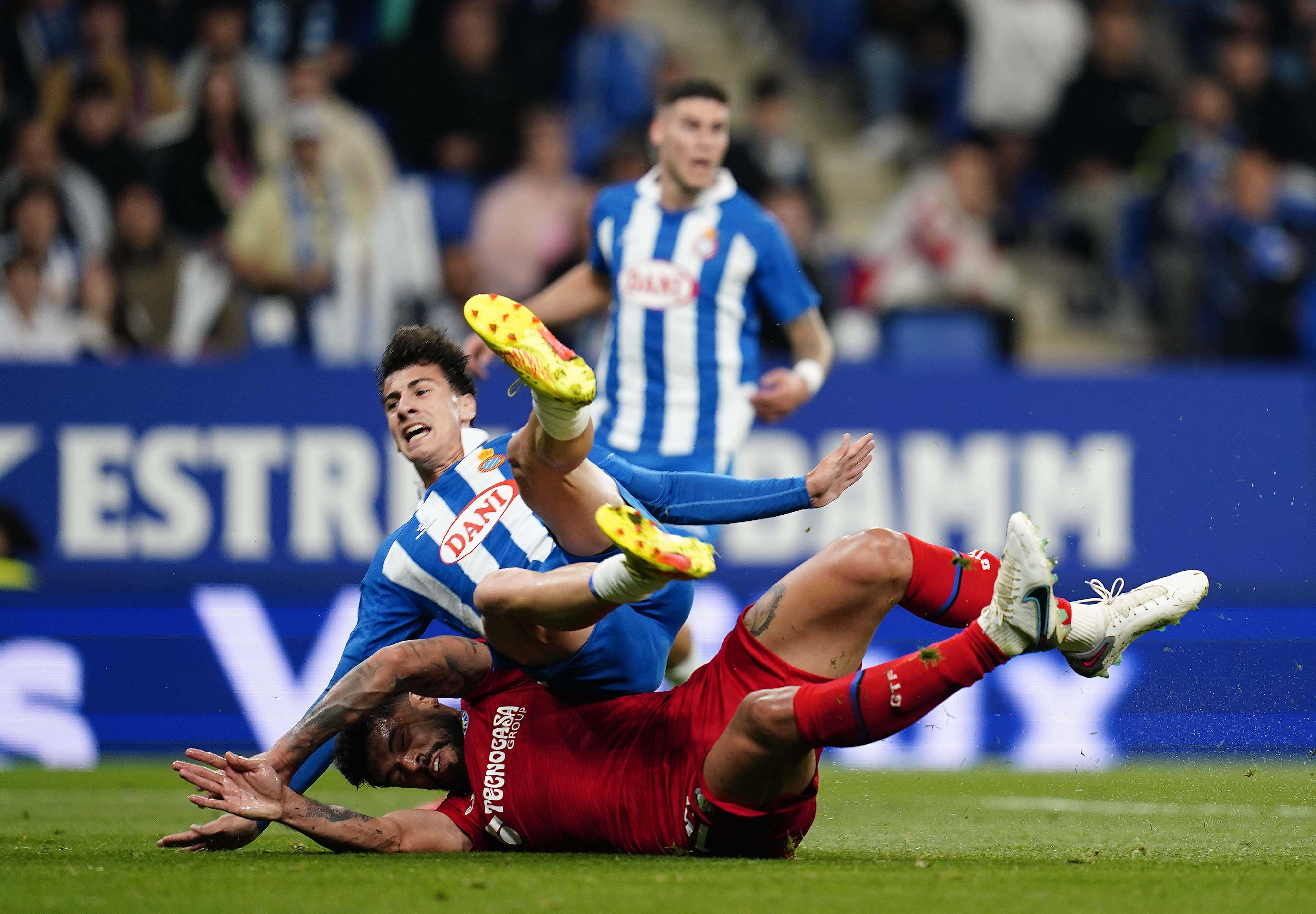 El Getafe salió con más ímpetu tras el descanso y se aproximó al área perica en un par de ocasiones con cierto peligro. En las más clara, voló nuestro ángel Joan García para hacer otra de las paradas de la temporada tras un cabezazo de Arambarri, máximo goleador del Getafe esta temporada. El portero blanquiazul sigue demostrando cada jornada que es el mejor de la competición. Después del paradón llegó otra acción polémica que acabó con la expulsión de Uche por una durísima e injustificada entrada a Jofre.