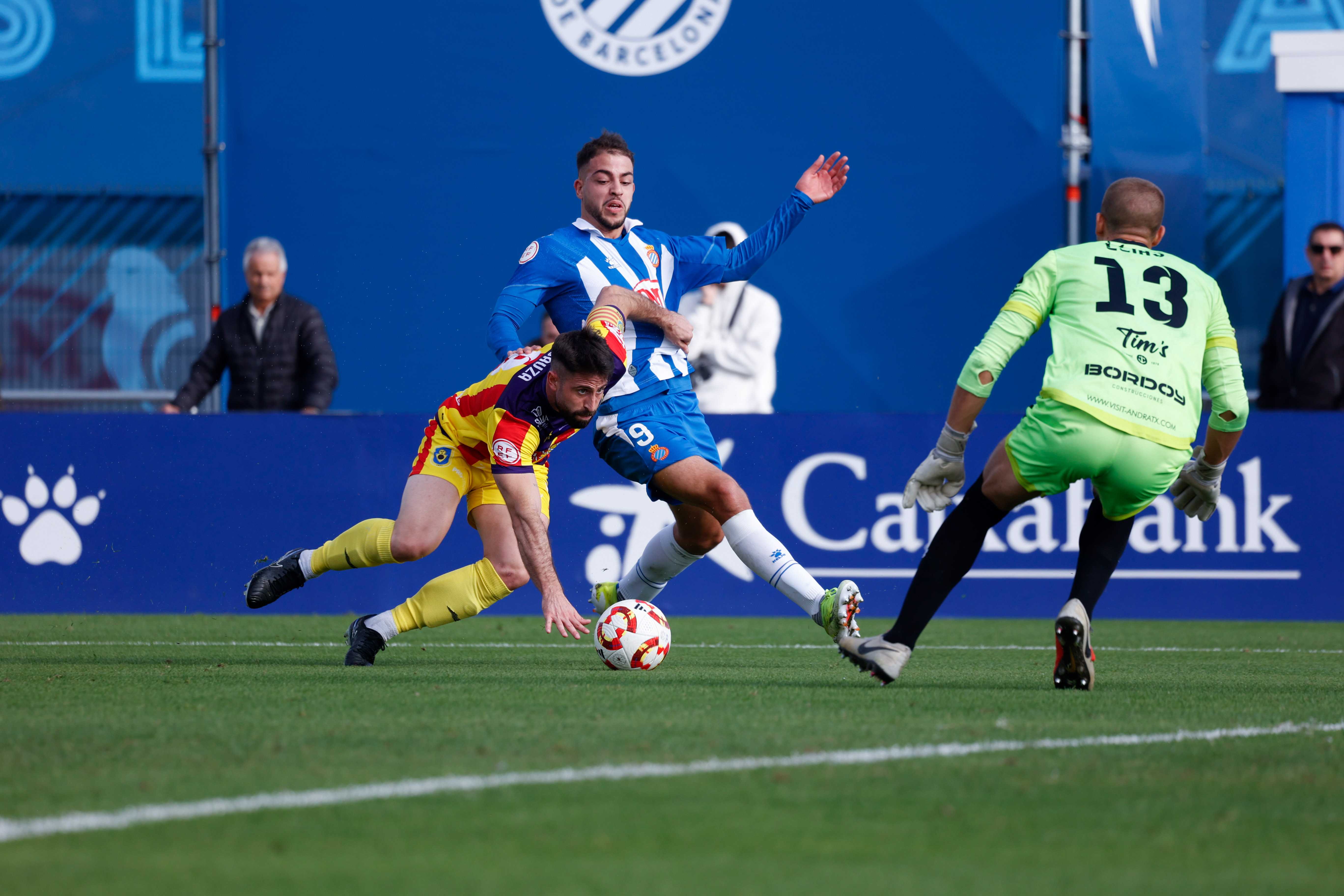 La segunda parte fue algo más vistosa ya que el Andratx tenía que buscar el gol del empate y dejaba algo más de espacios detrás para que el Espanyol corriese. Los blanquiazules amenazaban atacando la profundidad a la espalda de la zaga visitante y hacían daño.