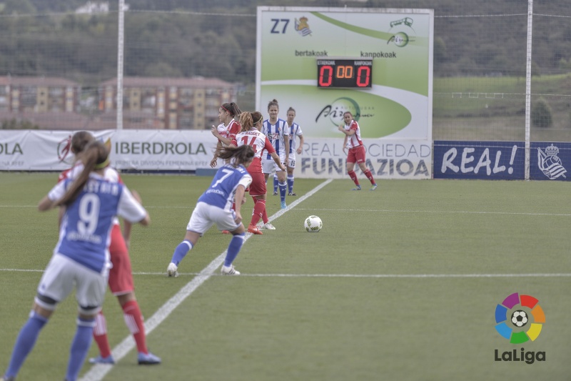 La Real Sociedad se encontró más cómoda en los primeros compases de juego ante un Femenino que prefirió frenar el ímpetu inicial de las vascas haciéndose fuertes en defensa para salir al ataque. Desgraciadamente, cumplido el primer cuarto de hora de partido, en una jugada embarullada dentro del área perica, Lareo conseguía rematar desde el suelo para hacer subir el 1-0.