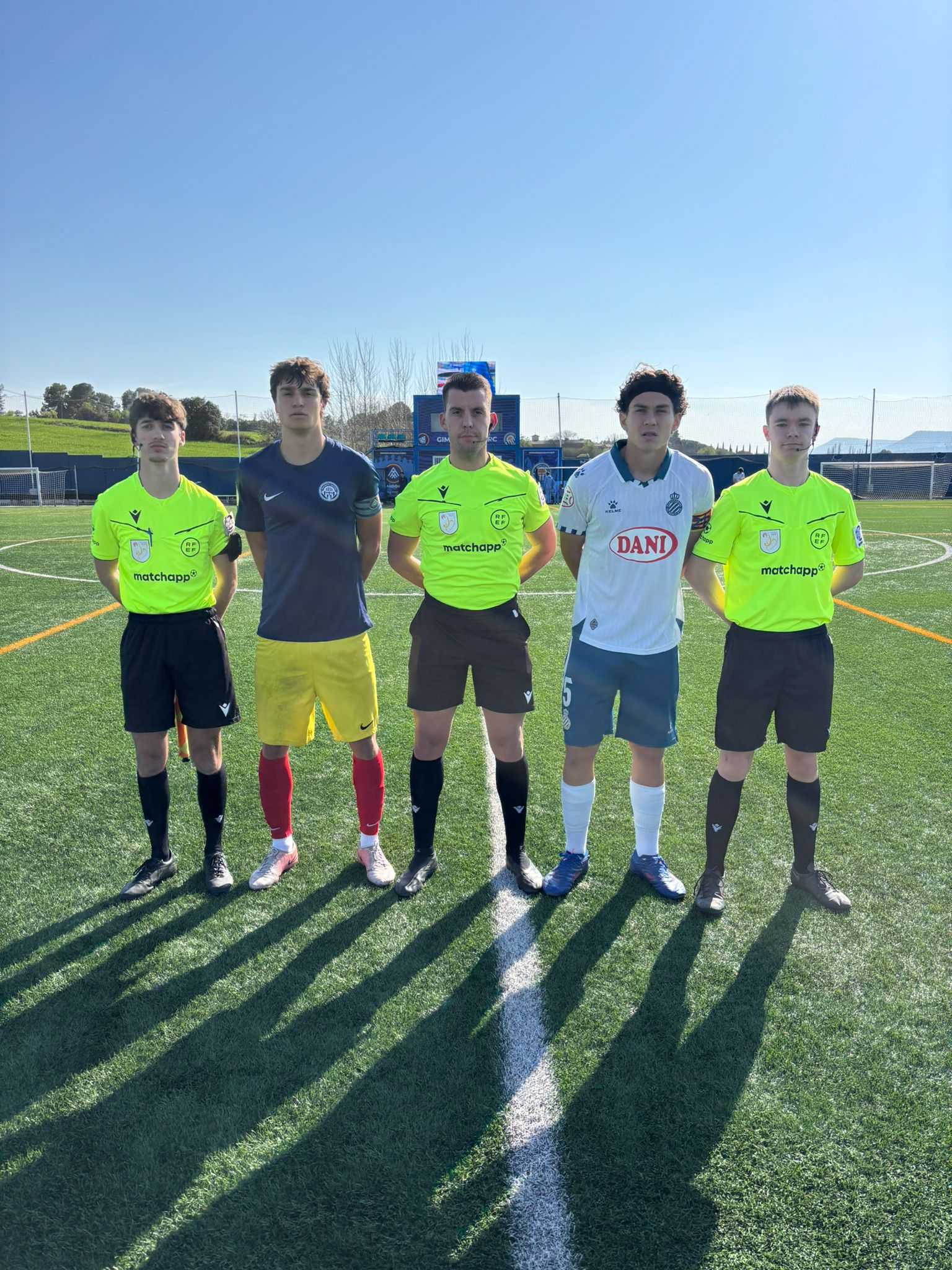 El primer gol llegó en el minuto 26, cuando Mullerat adelantó a los visitantes con el 0-1. La reacción local no se hizo esperar y apenas cuatro minutos después, en el 30, el Nàstic Manresa logró igualar el marcador. Lejos de acusar el golpe, el Juvenil A volvió a ponerse por delante antes del descanso: en el minuto 39, Martí Rivas culminó una acción a balón parado para firmar el 1-2.