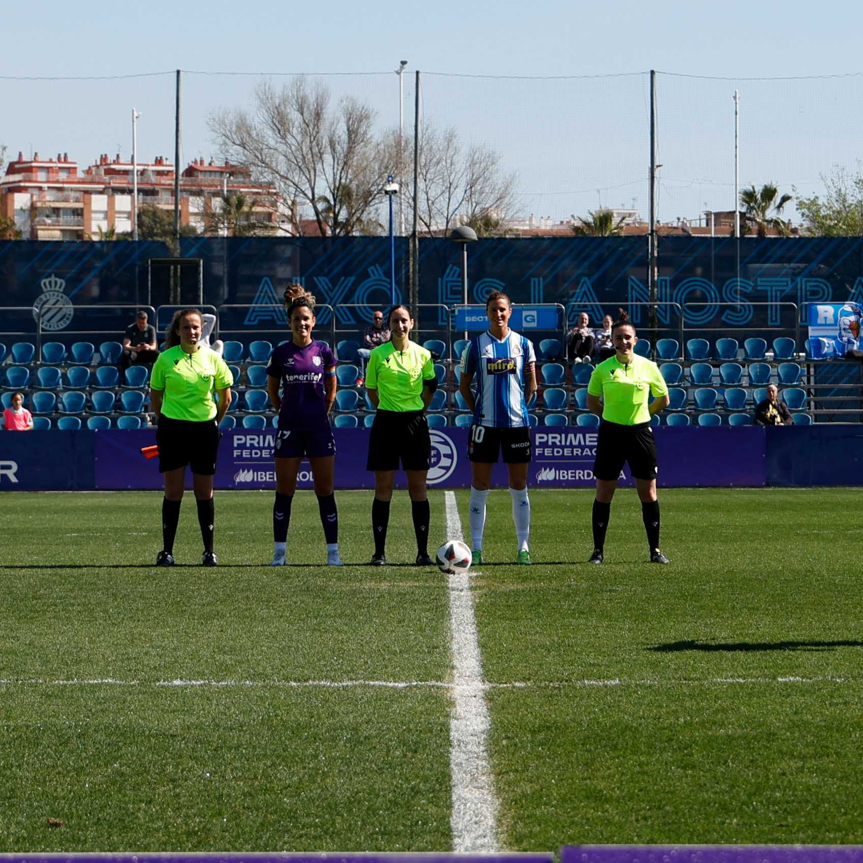 RCD Espanyol Femení: María Pi, Luzu, Guerra, Nuria Martínez, Caracas (Sara Extremera 90+1’), N. Opazo (Aina Torres 90+1’), Judit Pablos (Pixu 77’), Carol Marín, Alba Mellado (Baudet 65’), A. Martín (Ari Márquez 90+1’), Chini