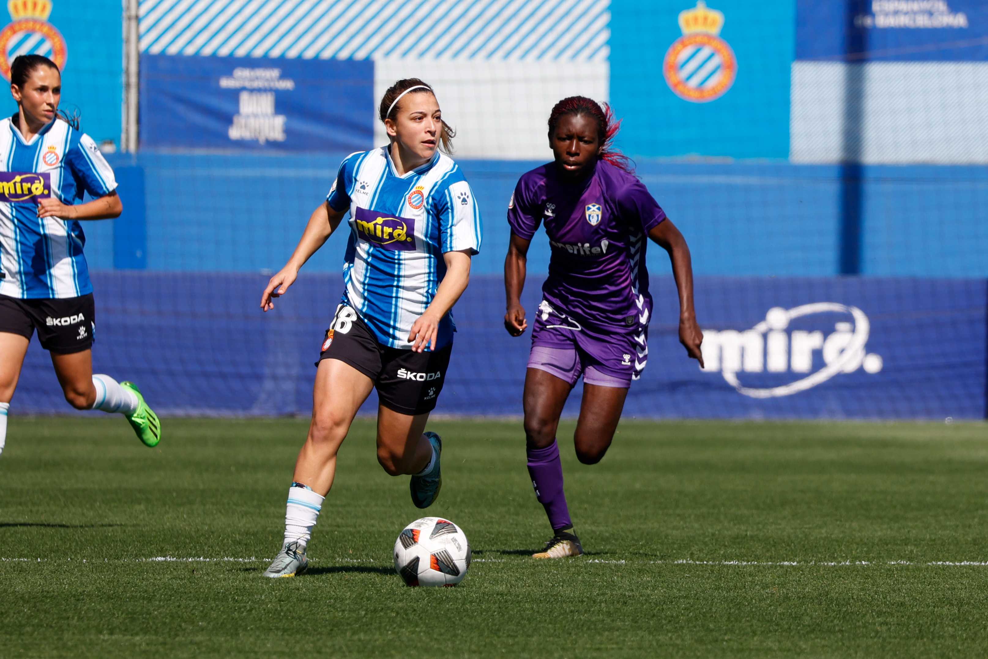 Fue una primera parte de dominio casi total del Espanyol. Sin especular, fue llegando con cierto peligro sobre todo por bandas. Judit Pablos y Alba Mellado ganaban constantemente la línea de fondo. Solo faltó el gol en una primera parte muy completa de las chicas de Carol Miranda.