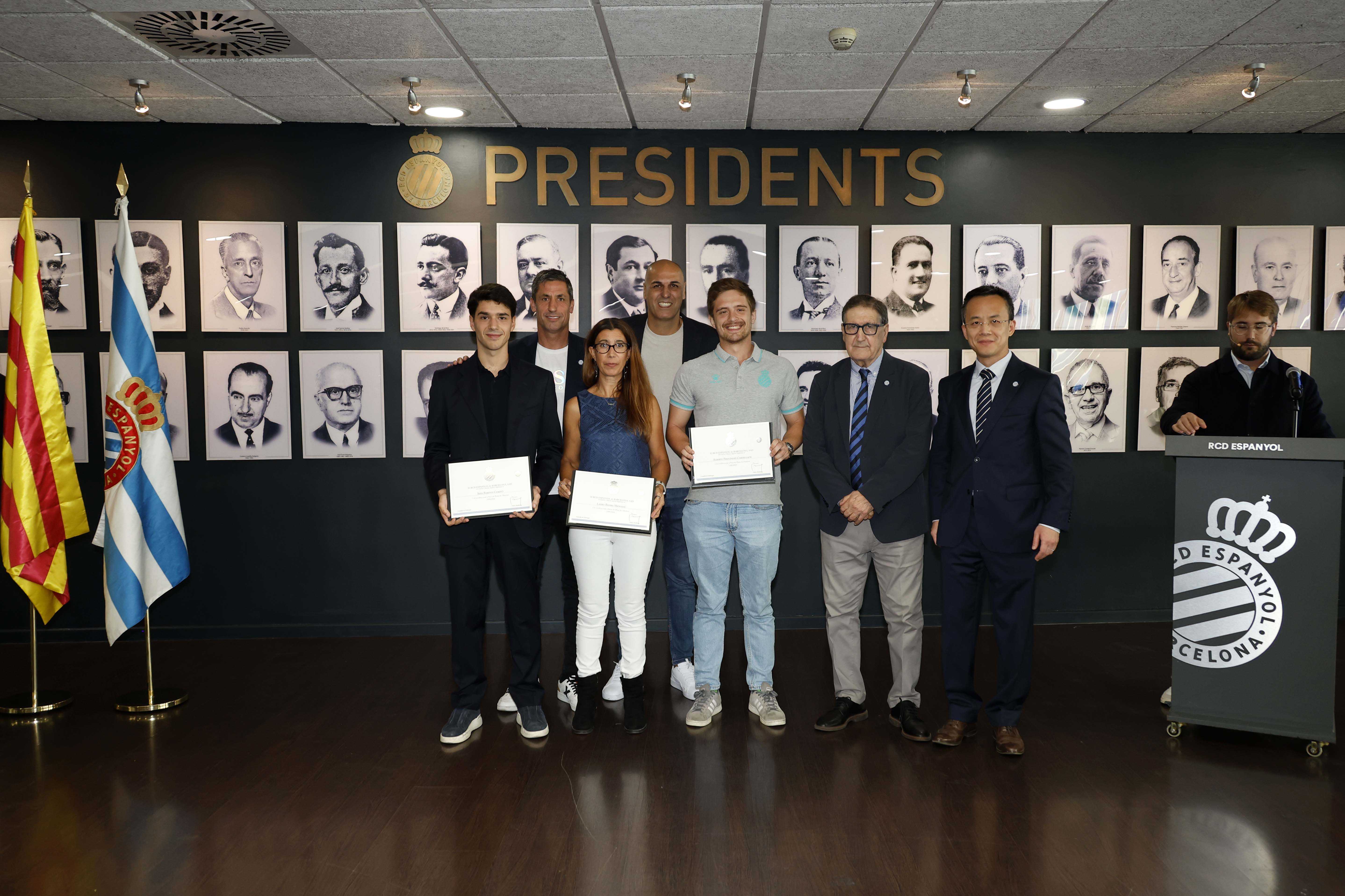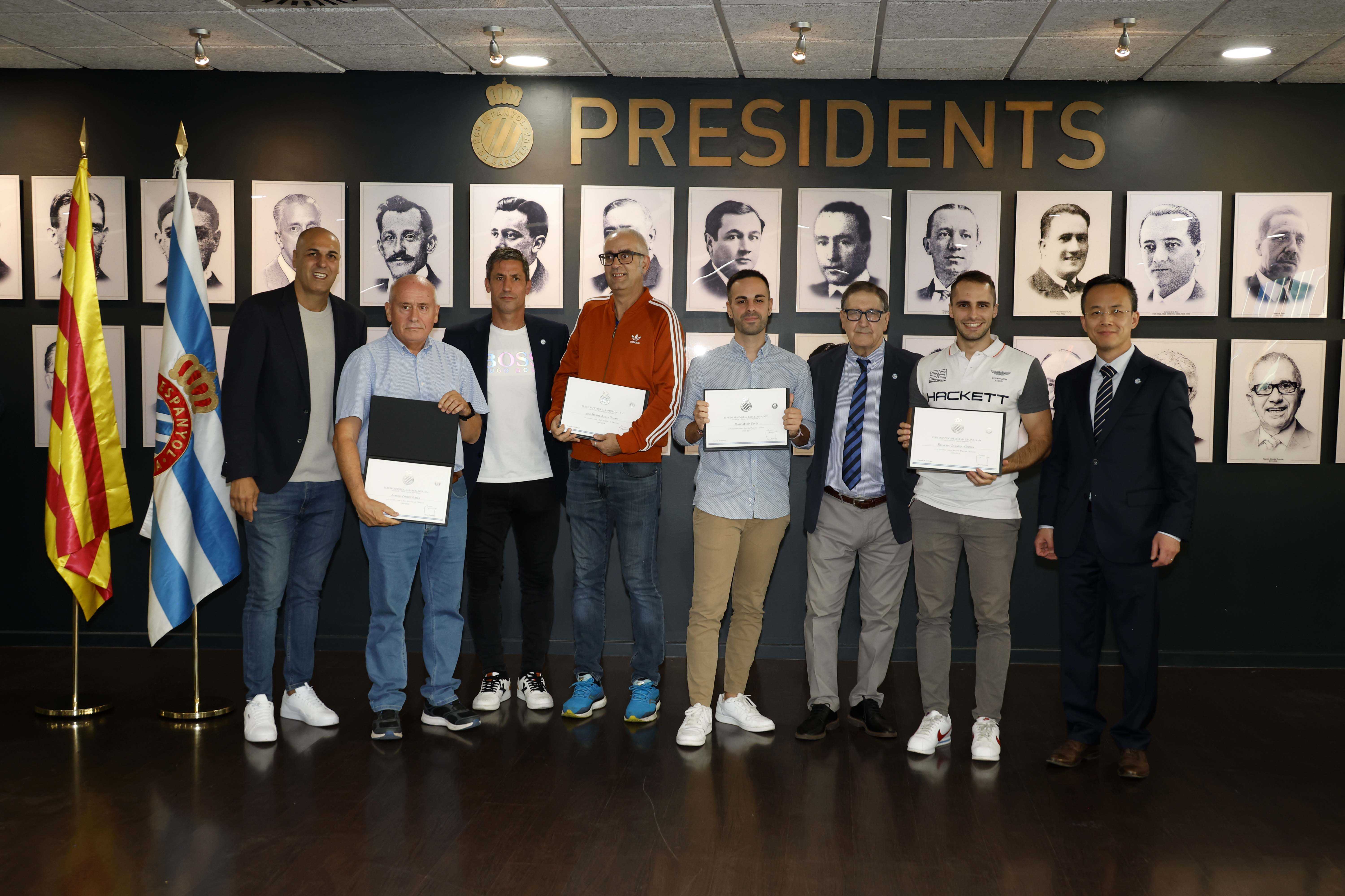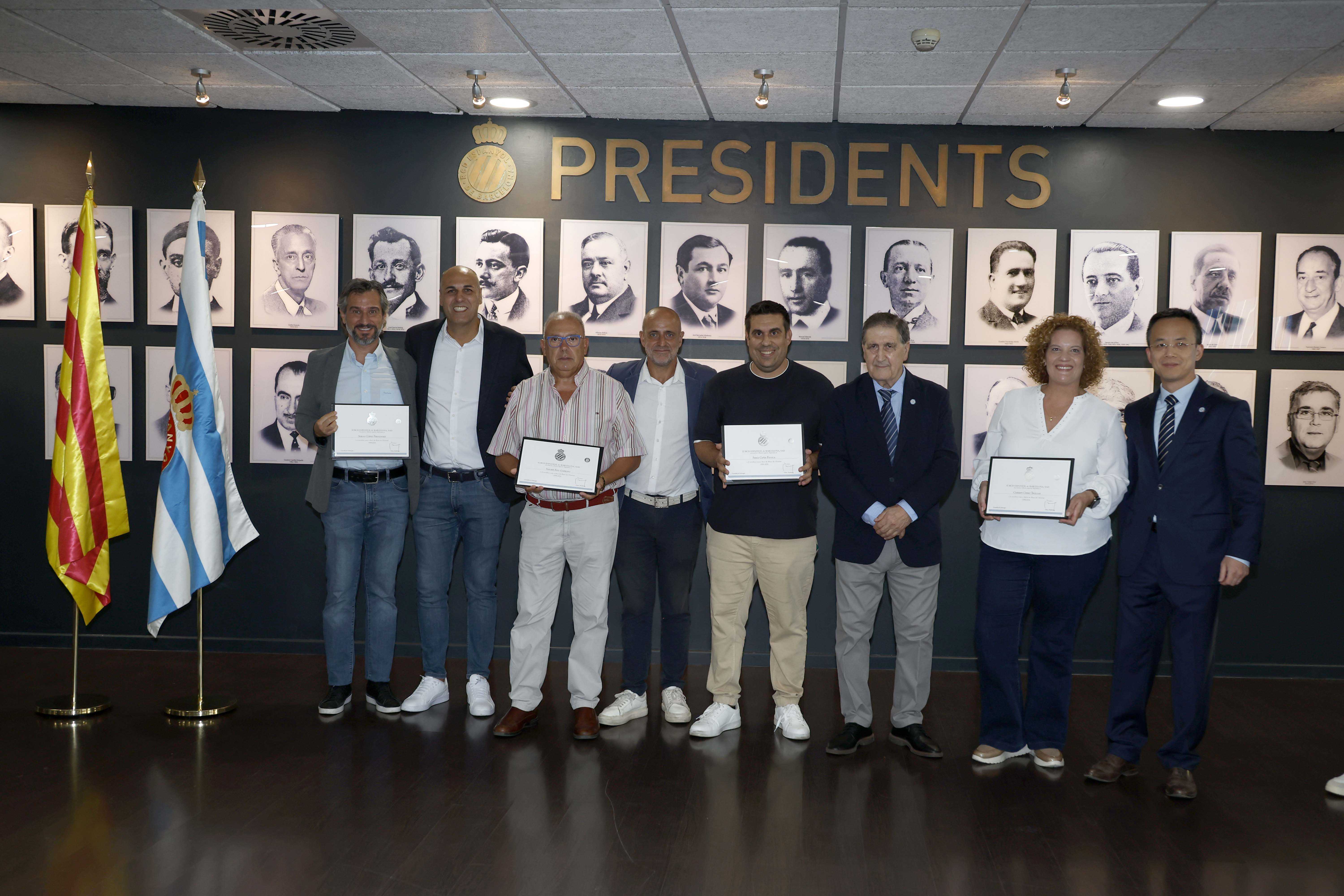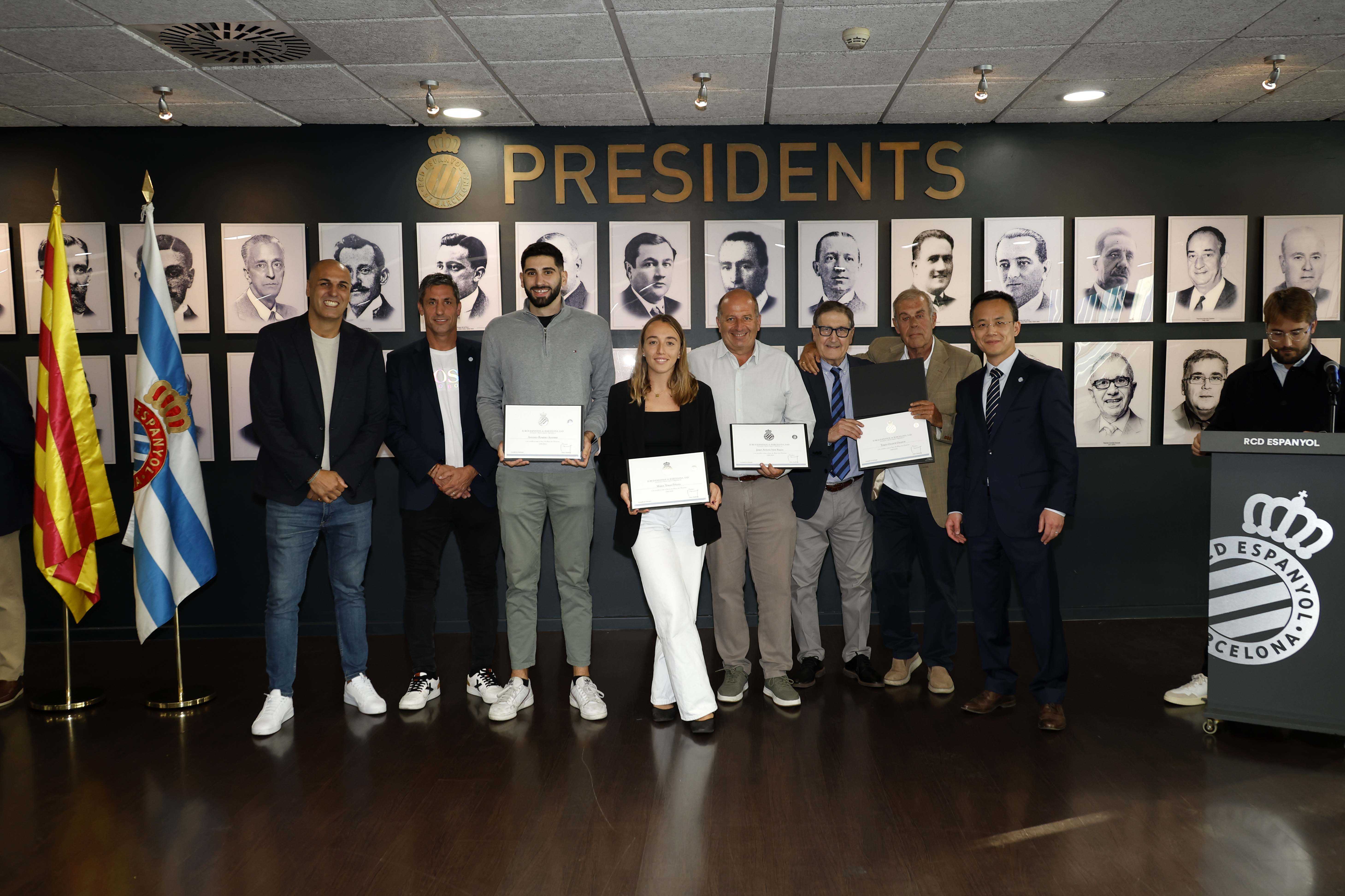 Antoni Fernández Teixidó y José Luis Perelló, presidente y vicepresidente de la Fundació, los embajadores Iñaki Pérez de Arrilucea, Raúl Longhi, Toni Blanch, el presidente de la FCPE, Ton Roig, el propio Alan Pace y diferentes ejecutivos del club, quisieron acompañar a todos los condecorados en esta ocasión. Una jornada que, sin duda, quedará grabada en la memoria como un tributo al espíritu perico más auténtico.