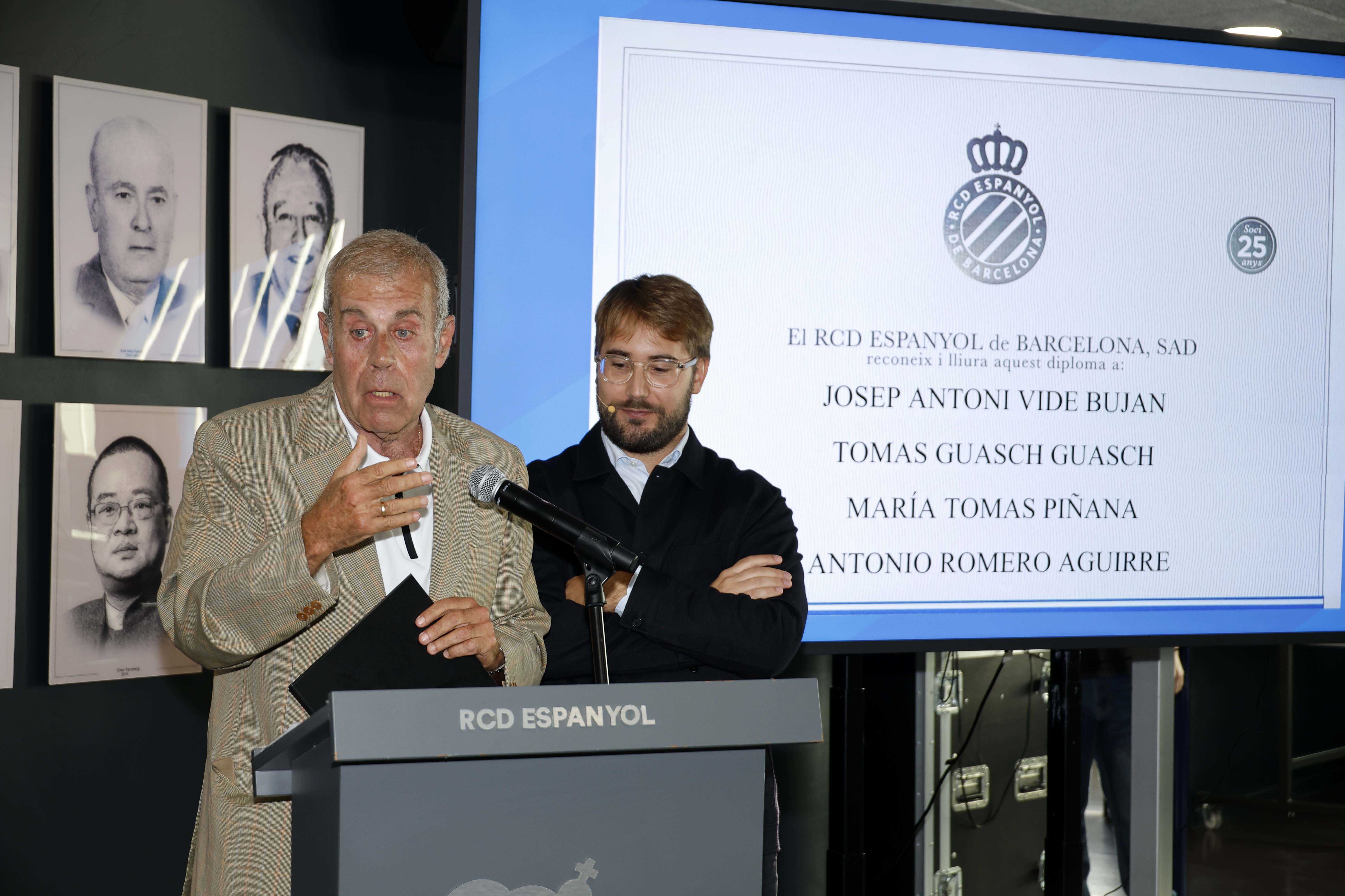 Como es tradición, la Sala President del RCDE Stadium ha acogido uno de los eventos más emotivos de la temporada con la entrega de los diplomas a los socios y socias que celebran los 25 años. Gente de todas las edades, caras conocidas, empleados… una amplia representación de la familia perica se reunió para rendir homenaje a quienes han permanecido siempre al lado del club, en los buenos y en los malos momentos.