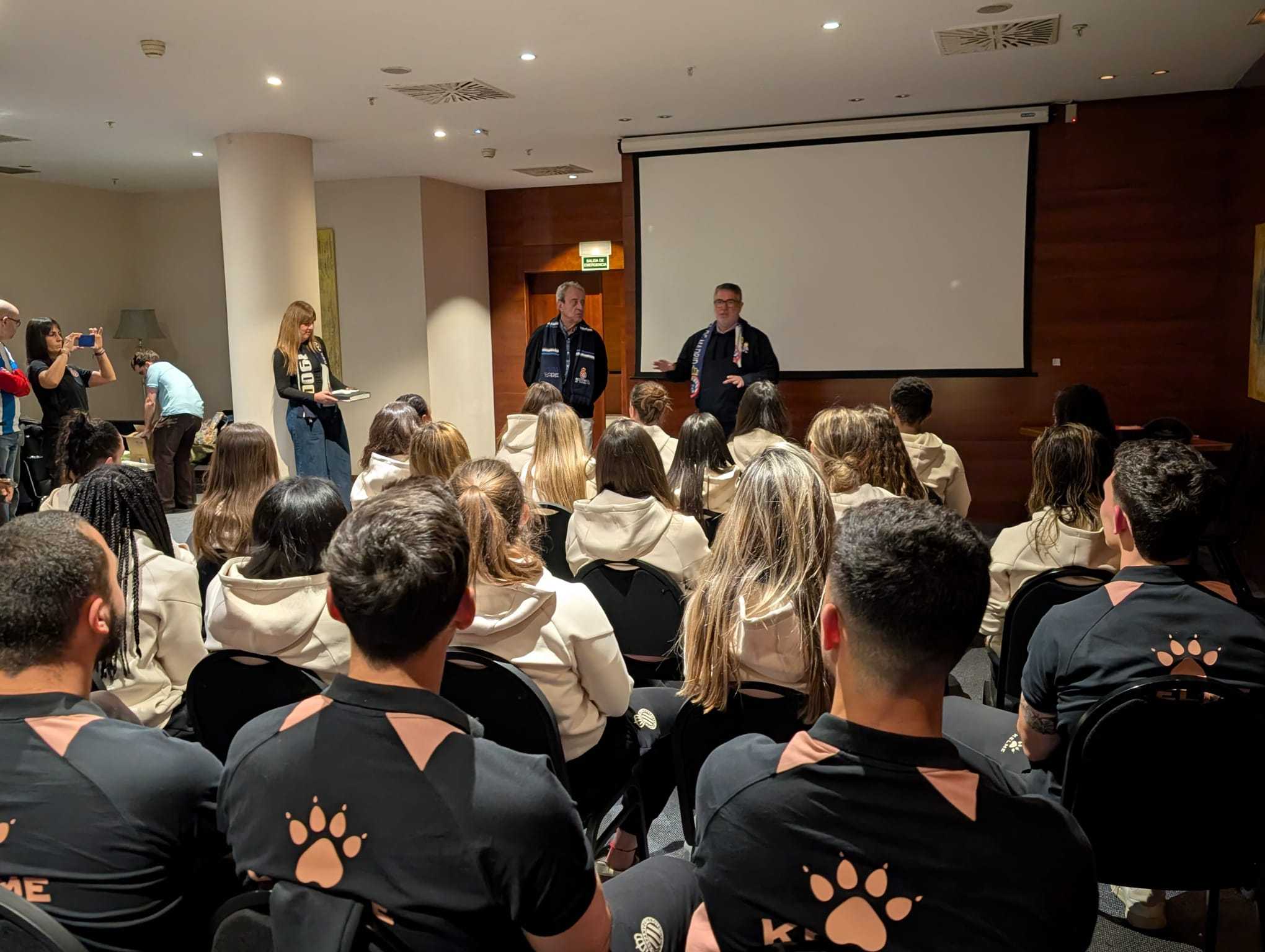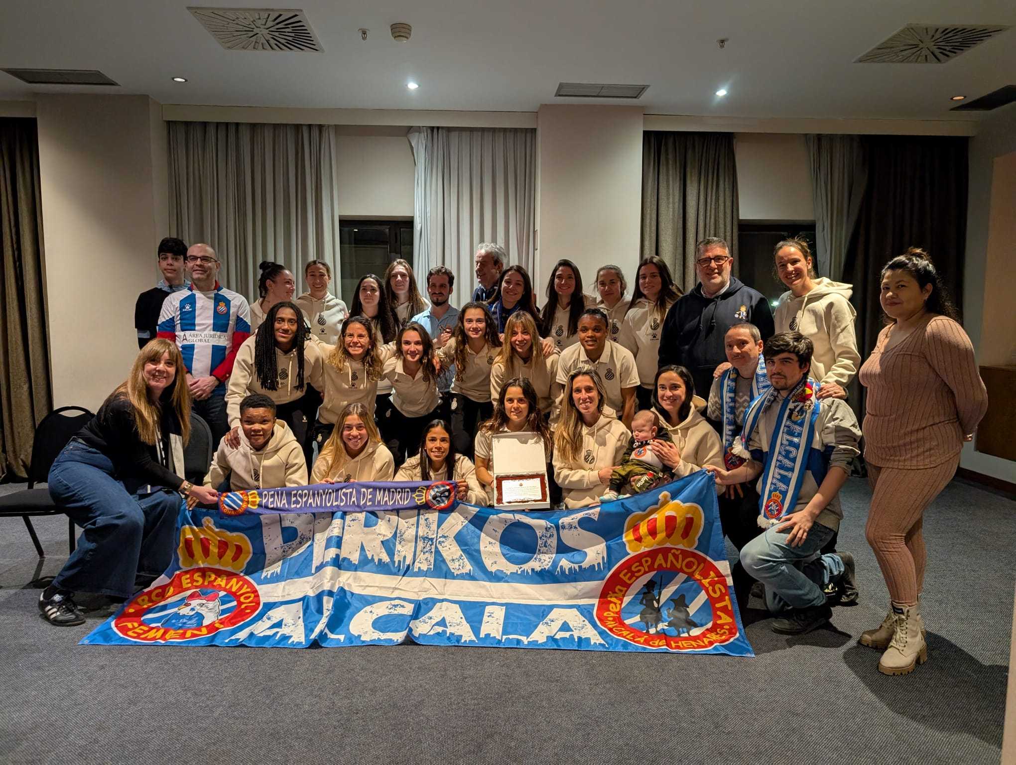 Aprovechando el desplazamiento del RCD Espanyol para enfrentarse al Atlético de Madrid, las peñas pericas de Madrid compartieron un rato con las jugadoras y el staff en el hotel de concentración.