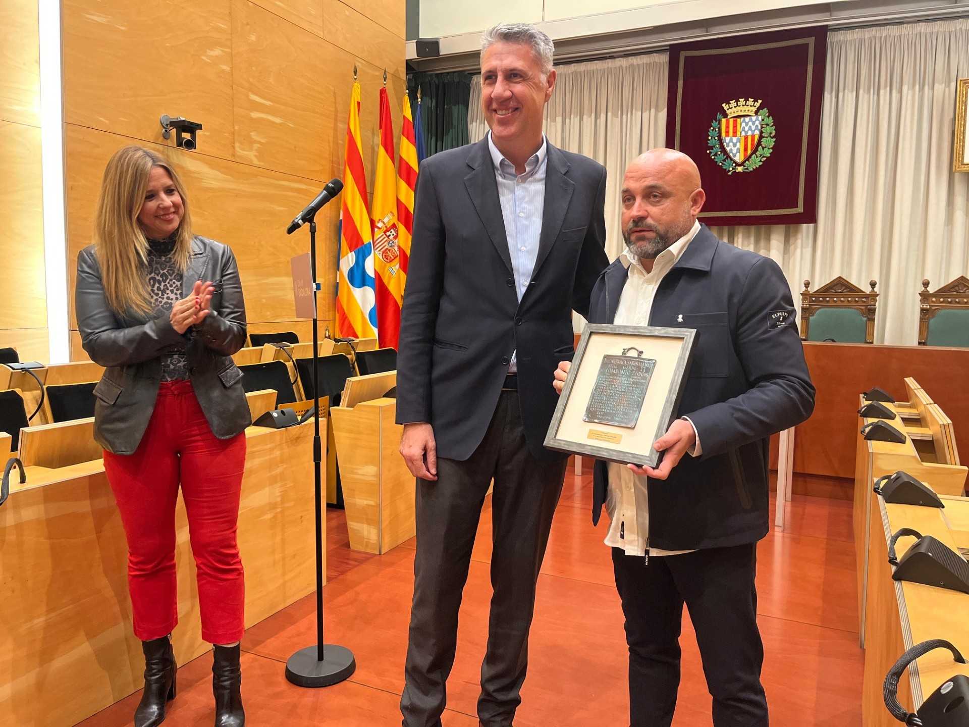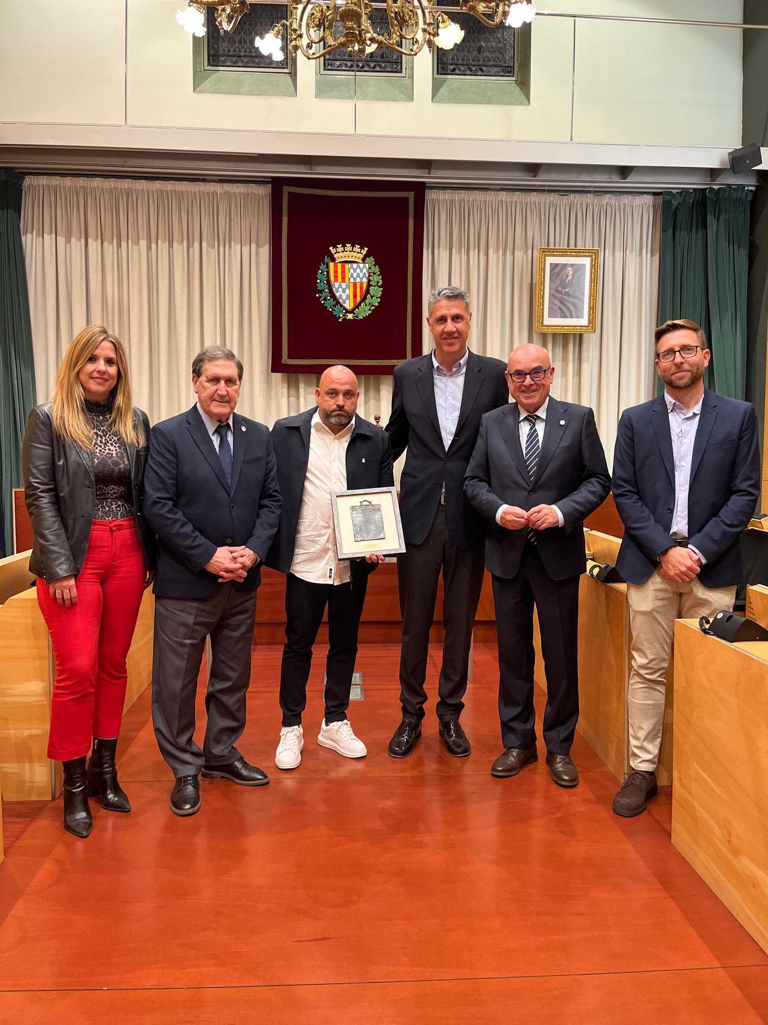 Acompañado por el consejero del RCD Espanyol, Rafa Marañón, y el director de Comunicación, Relaciones Institucionales y portavoz del club, Xavi Andreu, y en un salón de plenos abarrotado de diferentes personalidades políticas, del mundo del deporte y de la sociedad civil de la ciudad, Manolo González ha sido obsequiado con la Tábula Hospitalis de bronce, inspirada en la tabla que se entregaba en Baetulo a aquellas personas que visitaban y dejaban su huella en la antigua ciudad de Badalona
