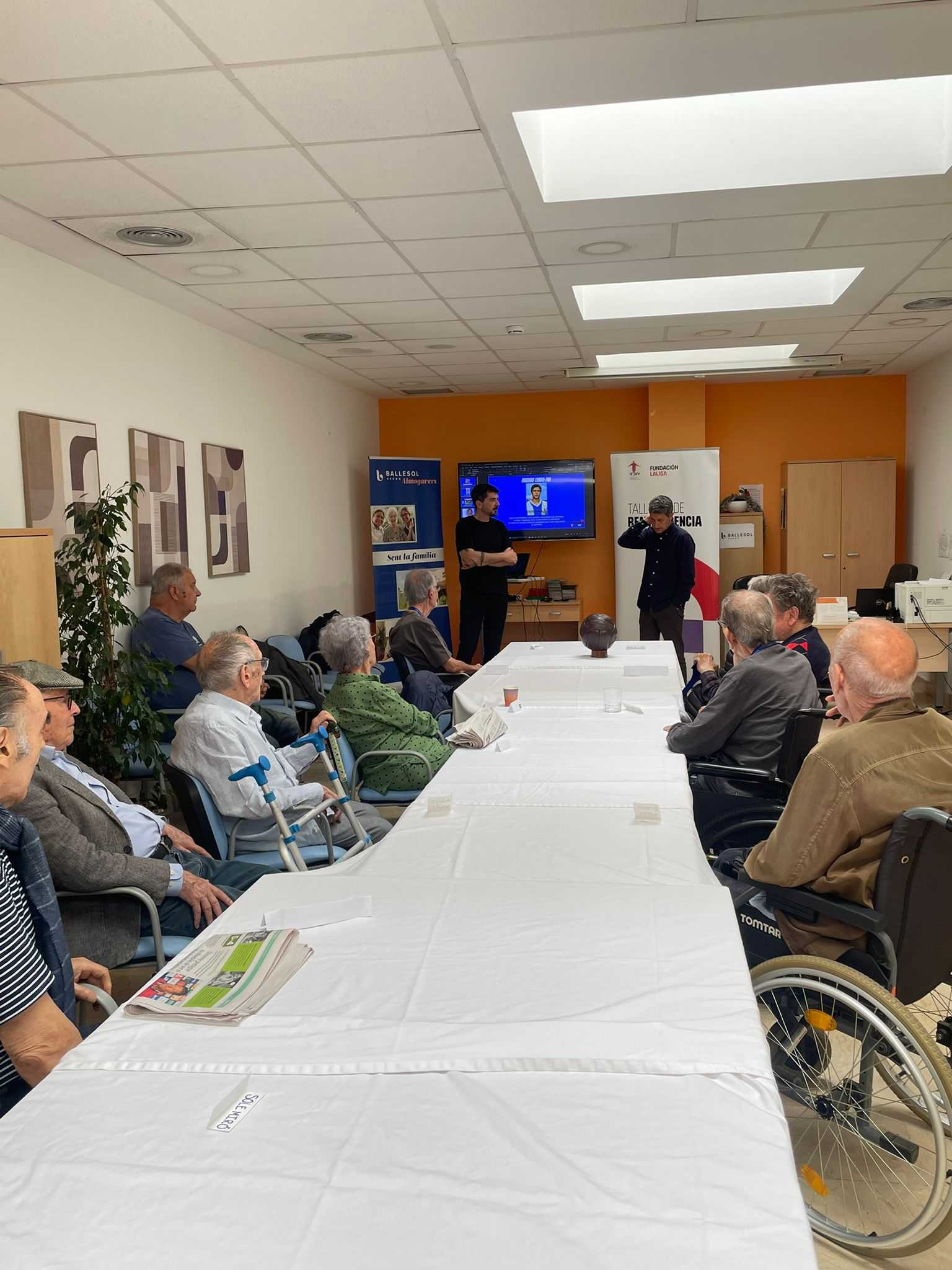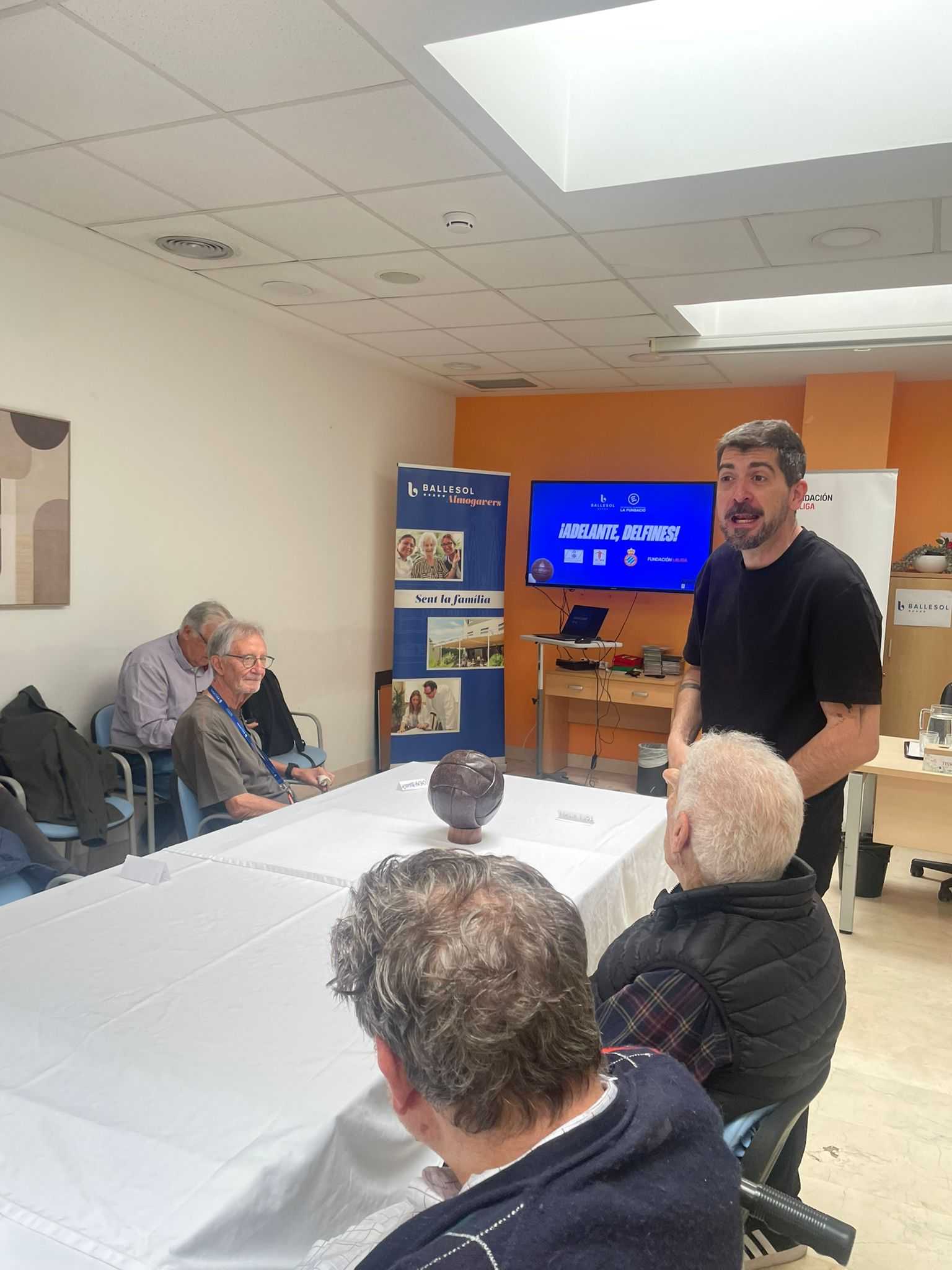 La Residencia Ballesol Almogàvers acogió la octava sesión de los Talleres de Reminiscencia Basados en el Fútbol, una jornada muy especial que contó con la presencia de Dani Solsona, mítico jugador del RCD Espanyol de Barcelona.