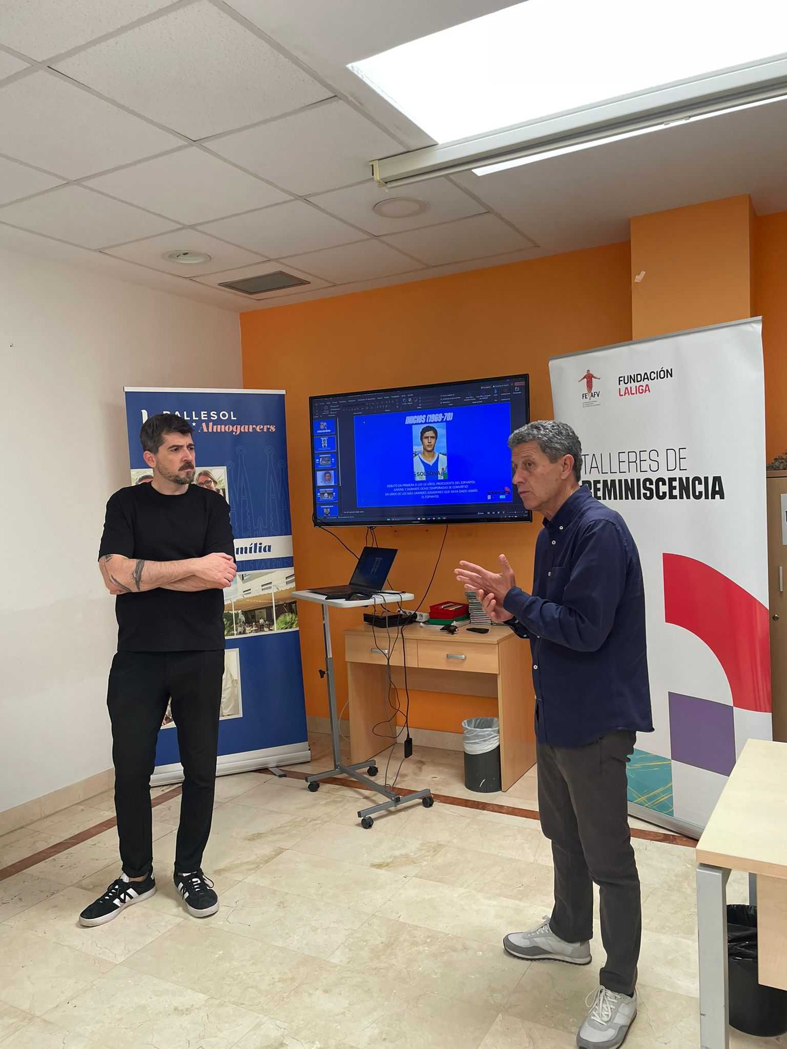Durante la sesión, los participantes pudieron compartir vivencias y recuerdos con Solsona, en un ambiente cercano y lleno de emoción. Posteriormente, el taller se centró en un recorrido por la historia de los derbis entre el Espanyol y el FC Barcelona, el enfrentamiento más antiguo del fútbol español.
