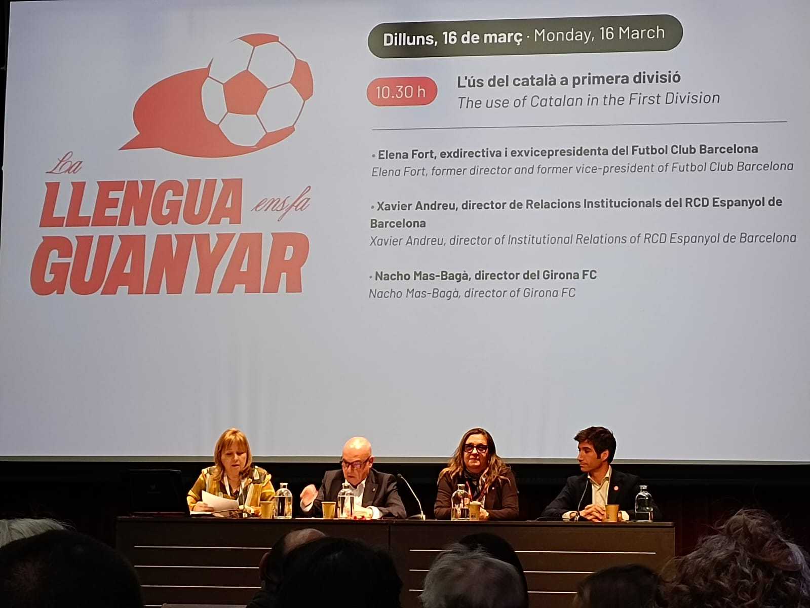 El club blanquiazul, representado por el director de Relaciones Institucionales, Xavi Andreu, ha participado en la primera mesa redonda del simposio, compartiendo espacio con representantes del FC Barcelona y el Girona FC, en un encuentro que reúne a expertos, profesionales y entidades deportivas para reflexionar sobre el papel de la lengua en el ámbito futbolístico.