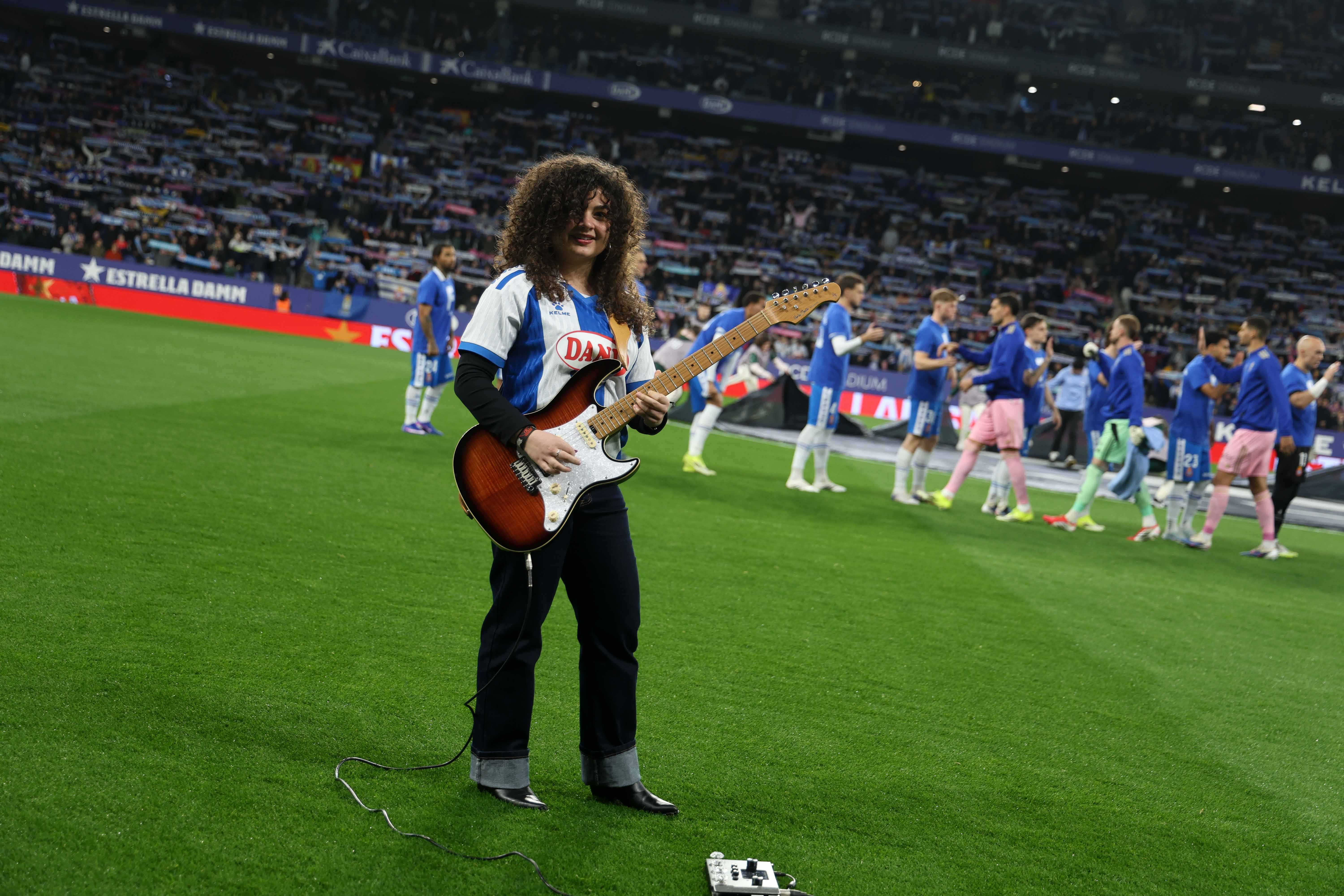 Además, otra de las participantes del mismo concurso ha protagonizado uno de los momentos más emotivos de la previa del partido. La joven interpretó un solo de guitarra mientras sonaba el himno del RCD Espanyol, acompañando con su música a los miles de aficionados presentes en el estadio y aportando un toque especial a la ceremonia previa al encuentro.
