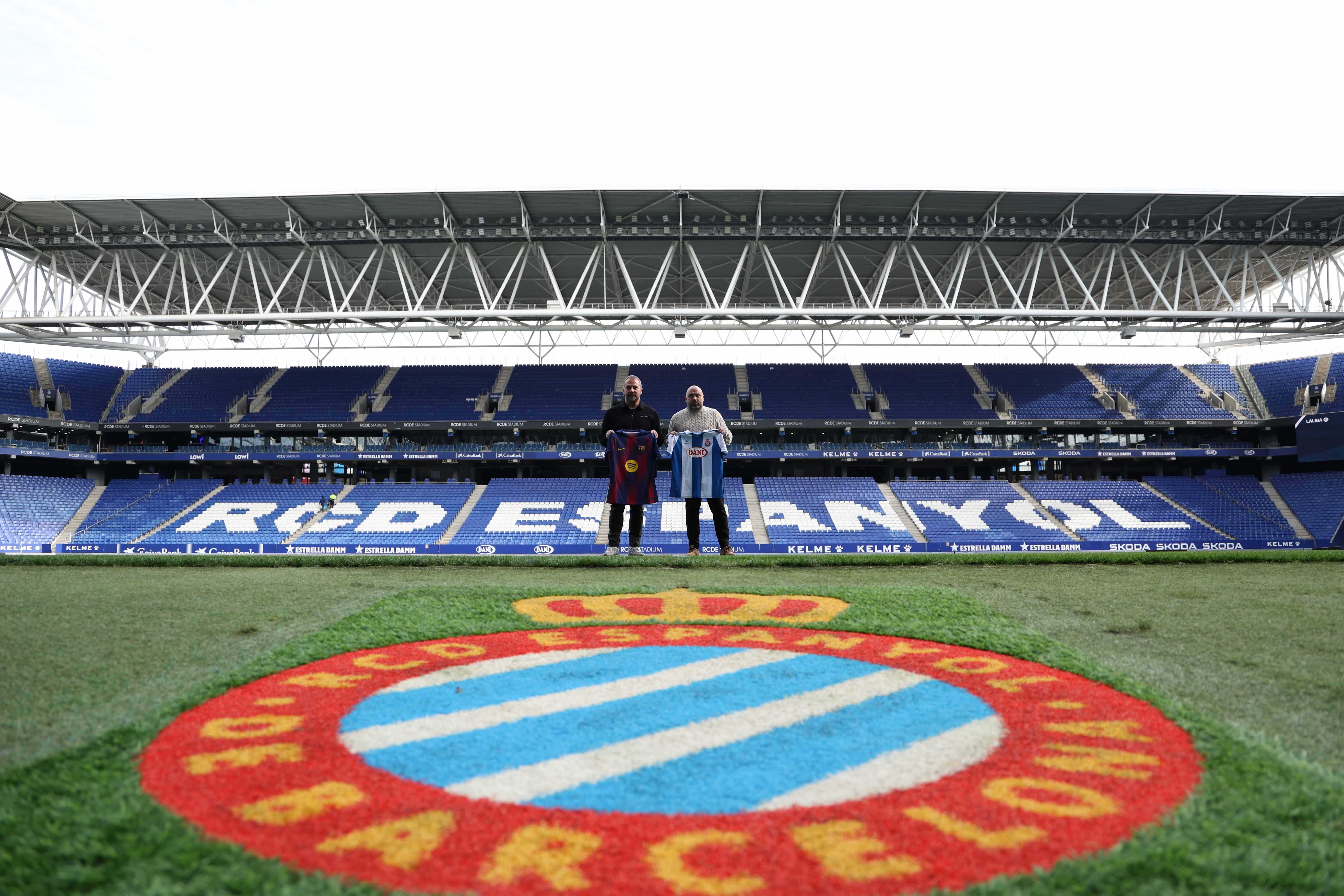 Con todo preparado para vivir un espectáculo futbolístico, Manolo González y Hansi Flick han cumplido este viernes con el tradicional encuentro previo al derbi, que se disputará este sábado en el RCDE Stadium 21h. Los técnicos de ambos equipos, que siempre han mostrado mucho respeto en sus declaraciones previas, han repetido la foto de la pasada temporada.