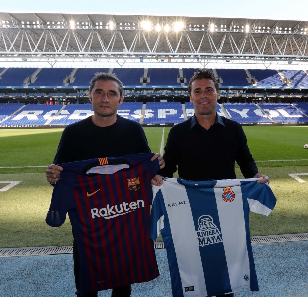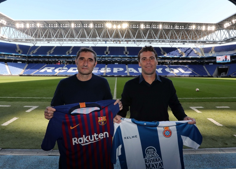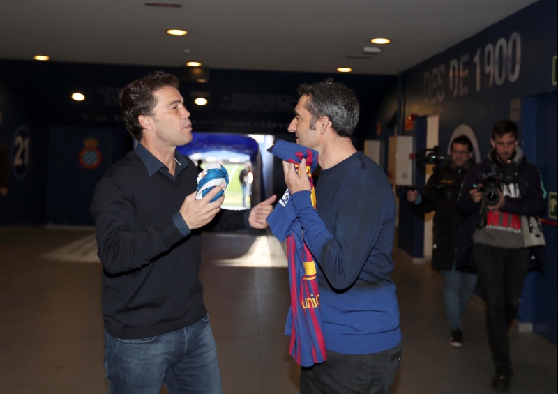Fiel a la tradición, los técnicos Joan Francesc Ferrer, Rubi, (RCD Espanyol de Barcelona) y Ernesto Valverde (FC Barcelona) han mantenido un breve encuentro en el RCDE Stadium, escenario del derbi de este sábado. Los dos entrenadores se han saludado afectuosamente y, antes de la fotografía oficial, han estado charlando durante varios minutos en el túnel de vestuarios.