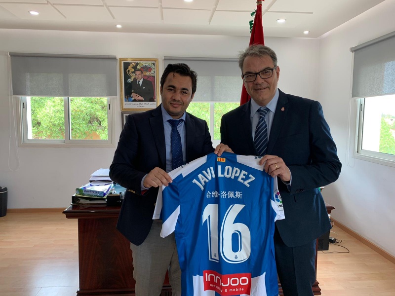 La delegación institucional del RCD Espanyol de Barcelona que acompaña al primer equipo femenino en Marruecos se ha reunido este jueves con Zakaria Idrissi, presidente del Consejo Provincial de Médiouna.