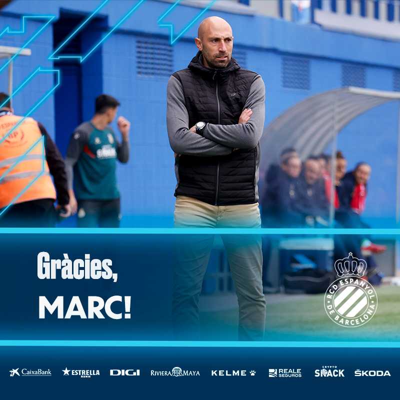 El RCD Espanyol de Barcelona quiere agradecer a Marc Cabestany su enorme dedicación, profesionalidad y trabajo durante el tiempo que ha estado al frente del equipo y le desea muchos éxitos en el futuro. Mucha suerte, Marc.
