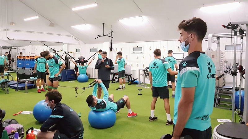 La plantilla blanquiazul ha vuelto hoy a la actividad tras el partido en el Carlos Tartiere. Los jugadores del primer equipo han vuelto a tener una intensa sesión de trabajo en la que se han repartido por el gimnasio y por el terreno de juego. Algunos, sin embargo, han podido ejercitarse a un ritmo menor para recuperar el tono físico después del partido de ayer.