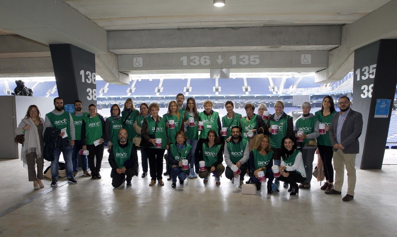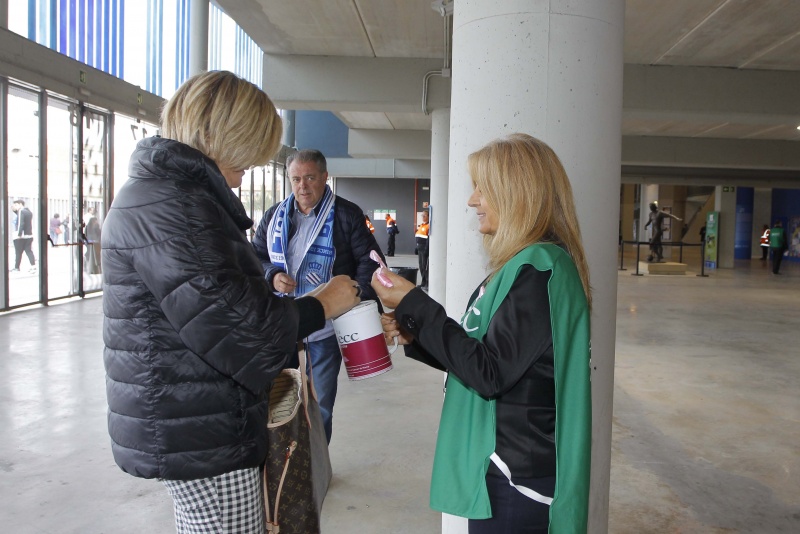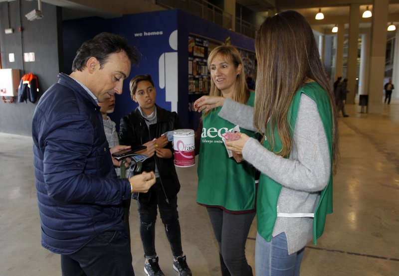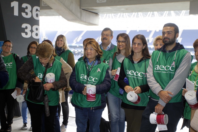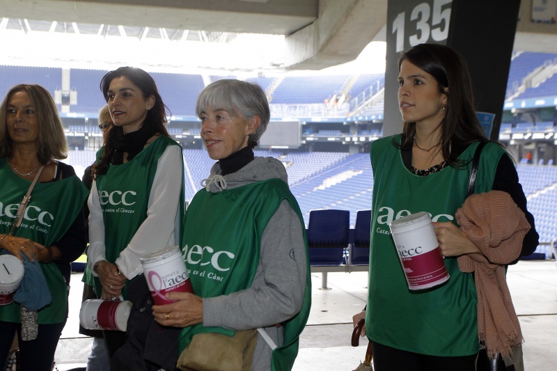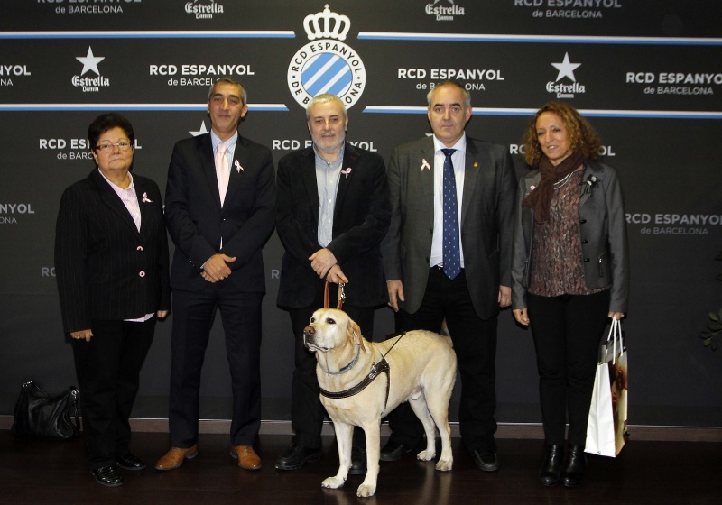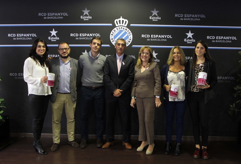 Como cada año, el RCD Espanyol colabora con la Asociación Española Contra el Cáncer para intentar recaudar fondos que permitan seguir investigando para acabar con esta enfermedad. Tras la celebración del día contra el cáncer de mama el club ha invitado al secretario del comité ejecutivo de la AECC, Guillermo Donadeu, a la responsable de relaciones institucionales, Mari Àngels Ayra, y al responsable de relaciones externas, Xavi Ruiz, con quienes se ha fotografiado el consejero delegado de la entidad, Ramon Robert.