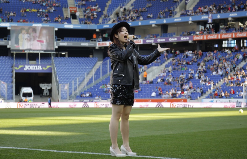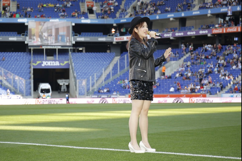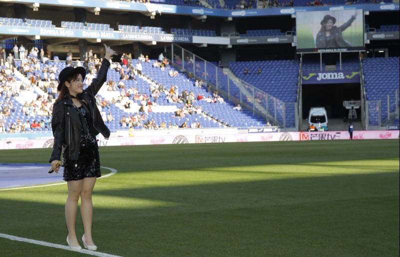 Uno de los momentos más emocionantes de este domingo ha llegado pocos minutos antes del inicio del partido ante la SD Eibar. La concursante del programa Supergil 2016 Wine Q ha cantado antes del inicio ‘Els Meus Colors’ en catalán y también el tema principal del programa en chino e inglés. Gracias al acuerdo entre el RCD Espanyol, Mango TV y su proveedor oficial MengNiu, Wine Q ha tenido la oportunidad de cantar para los socios y aficionados blanquiazules. Supergirl es uno de los programas con mayor audiencia en China y muchos cantantes de este programa lideran las más escuchadas en China.
