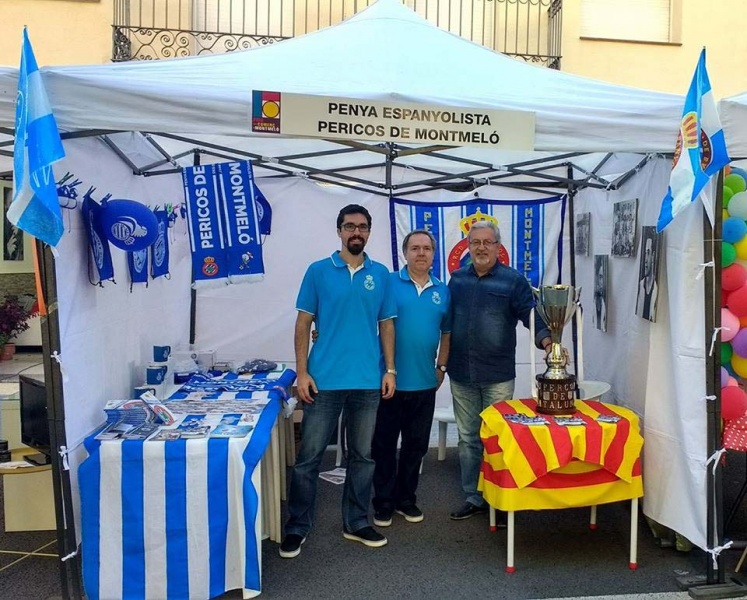 El pasado sábado 20 de mayo, la Penya Espanyolista Pericos de Montmeló participó en la 12ª Feria del Comercio y de Entidades de Montmeló. Desde las 10h hasta las 21h, estuvieron en la feria donde muchísimas personas acudieron para buscar todo tipo de información sobre la peña. También tuvieron a su disposición la bufanda de la peña, pins, llaveros, el libro 'Una vida de españolismo en Montmeló', pósters... Todo ello, bajo una carpa que lucía el nombre de esta embajada perica y cuadros históricos de antiguos jugadores pericos.