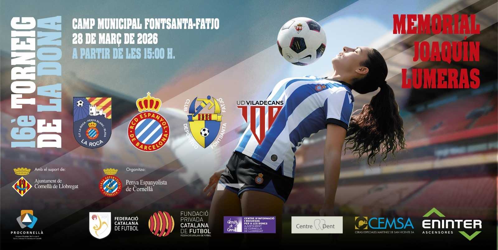 El torneo tendrá lugar el sábado 28 de marzo a partir de las 15h en el Camp Municipal Fontana-Fatjo, y los equipos participantes serán, además del RCD Espanyol, el Club Deportiu Fontsanta-Fatjó, la Penya Blanc-i-Blava La Roca i la Unió Esportiva Viladecans.