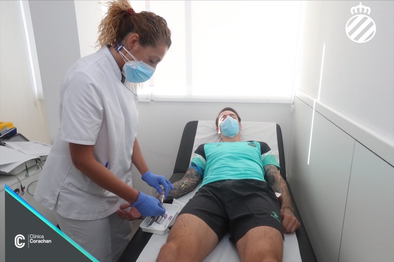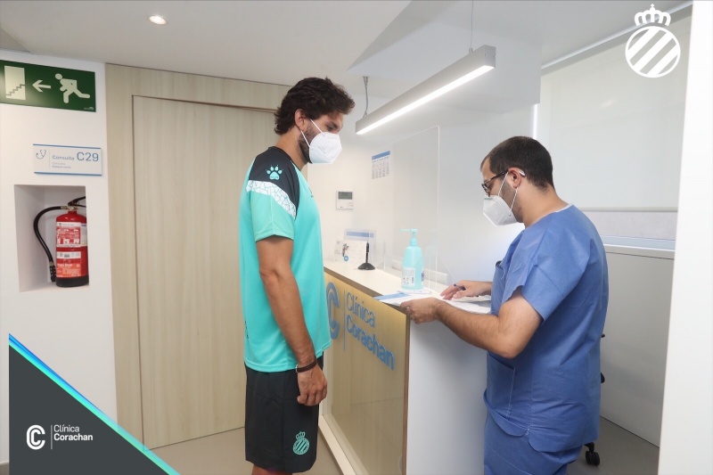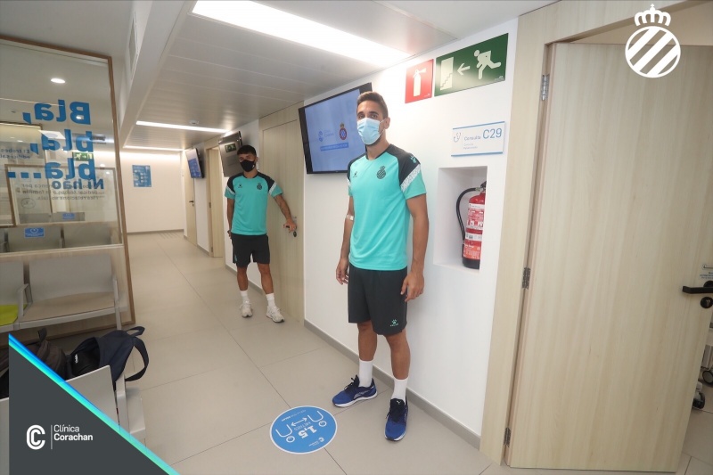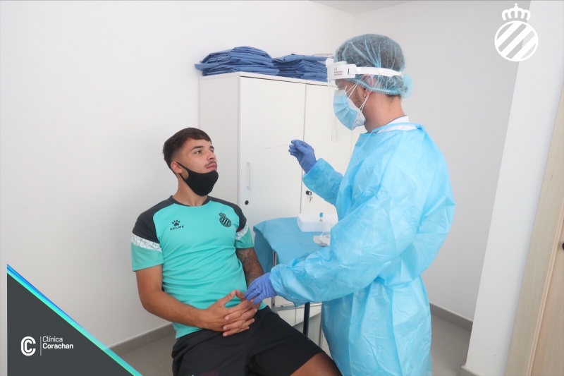 La primera plantilla del RCD Espanyol se ha sometido hoy a los test PCR, siguiendo los protocolos que se aplican por la COVID-19, como paso previo que determinará el inicio de la vuelta a la actividad. Todos los jugadores que formarán la plantilla, el staff técnico y el resto de colaboradores vinculados al primer equipo han tenido que pasar este test para determinar si están en condiciones de poder regresar a los entrenamientos. En paralelo, tal y como estaba previsto, la Clínica Corachan ha acogido un primer grupo de futbolistas que se han sometido a la pertinente revisión médica, mientras en las instalaciones de la Ciudad Deportiva Dani Jarque, un segundo grupo de jugadores, han completado una serie de test físicos para evaluar el estado general de los futbolistas. Todas las pruebas, que se repetirán este martes alternando los grupos, se han realizado de forma individualizada, en horario previamente fijado, y siguiendo las estrictas normas de salud e higiene marcadas en el protocolo de vuelta a la actividad de LaLiga.