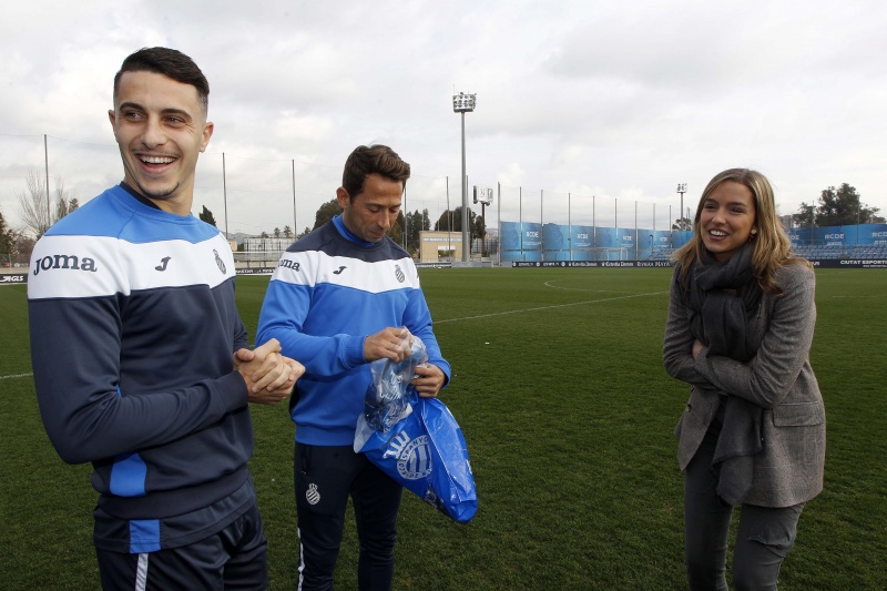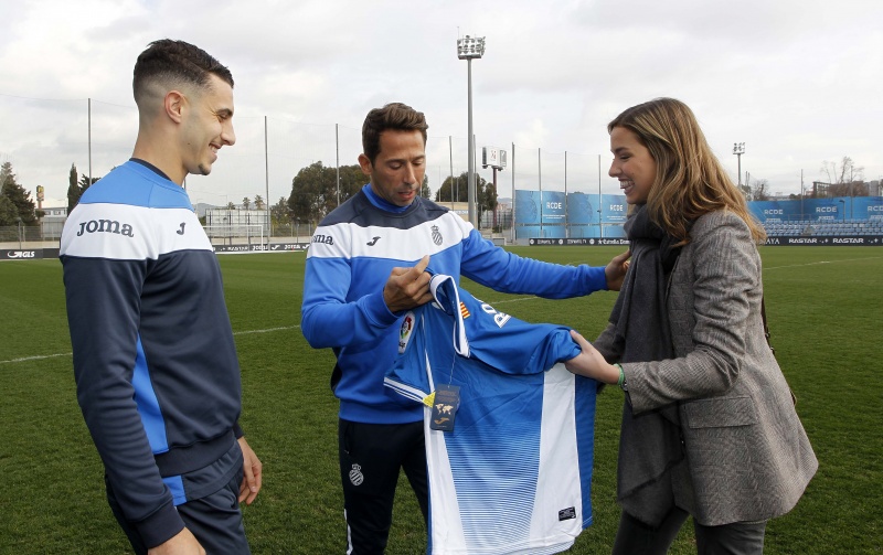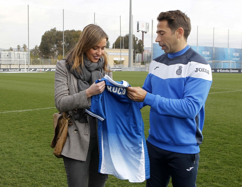 El club ha querido darle una sorpresa a Rocío Soler en un día tan señalado y antes del entrenamiento del primer equipo en la Ciudad Deportiva Dani Jarque, Raúl Tamudo y Mario Hermoso le han entregado una camiseta personalizada con su nombre.